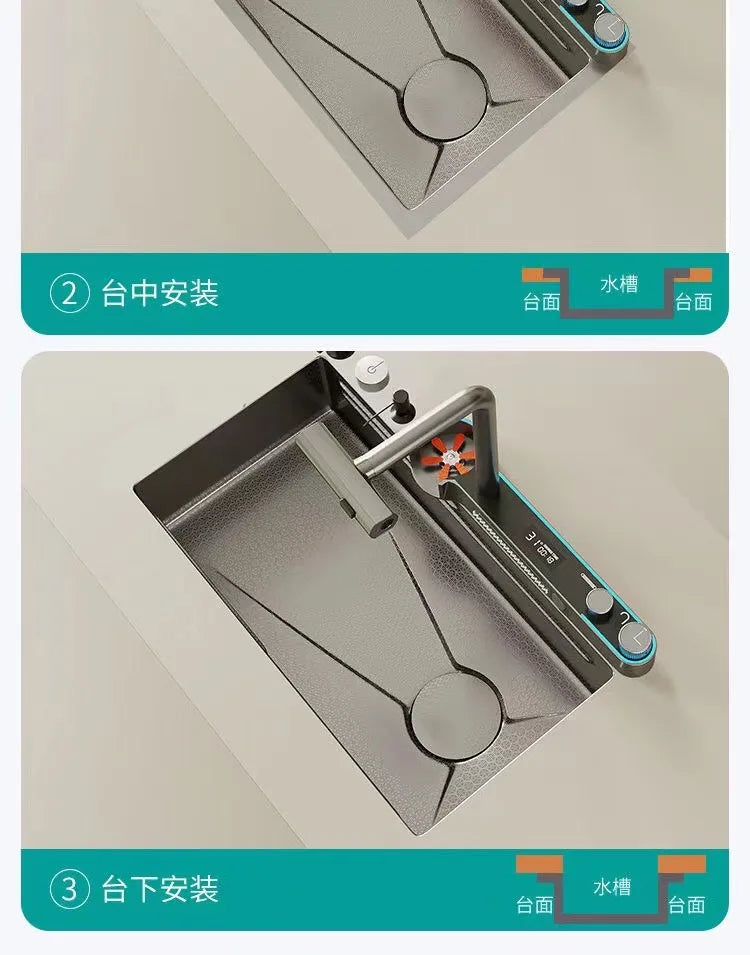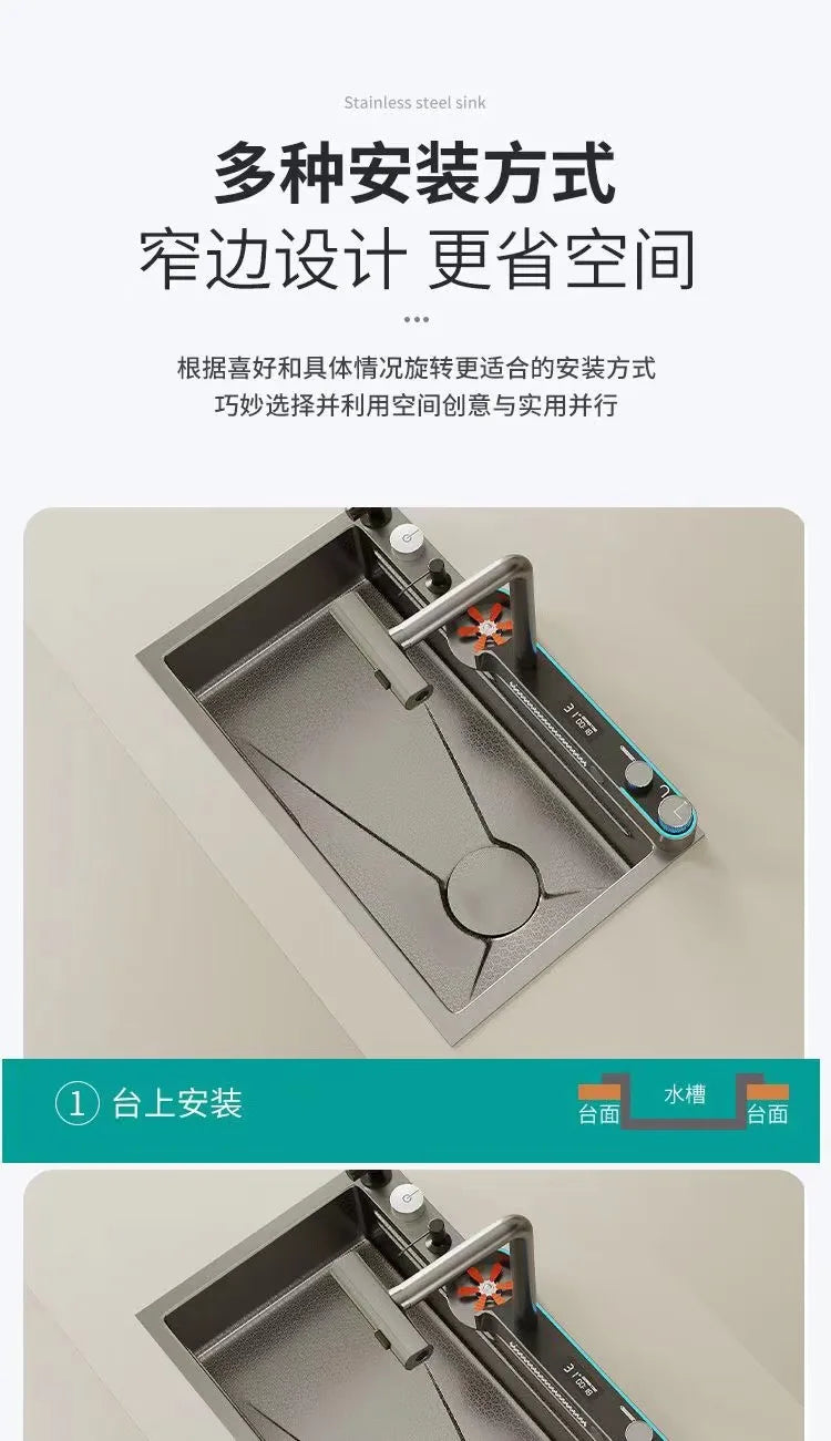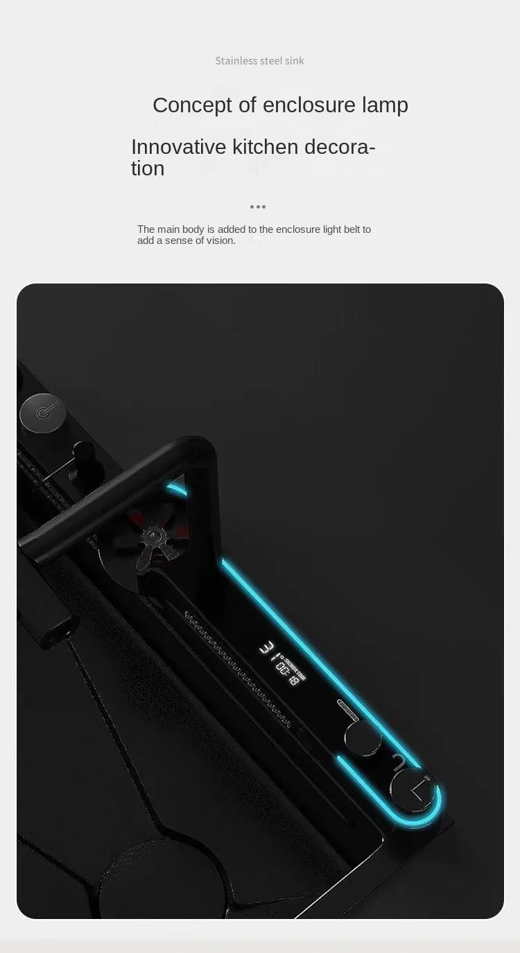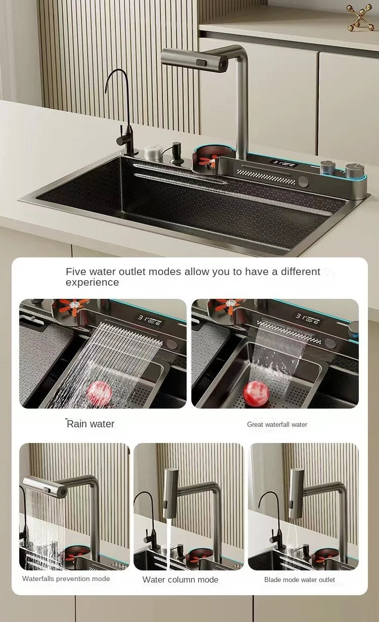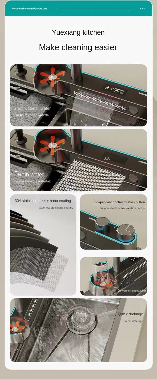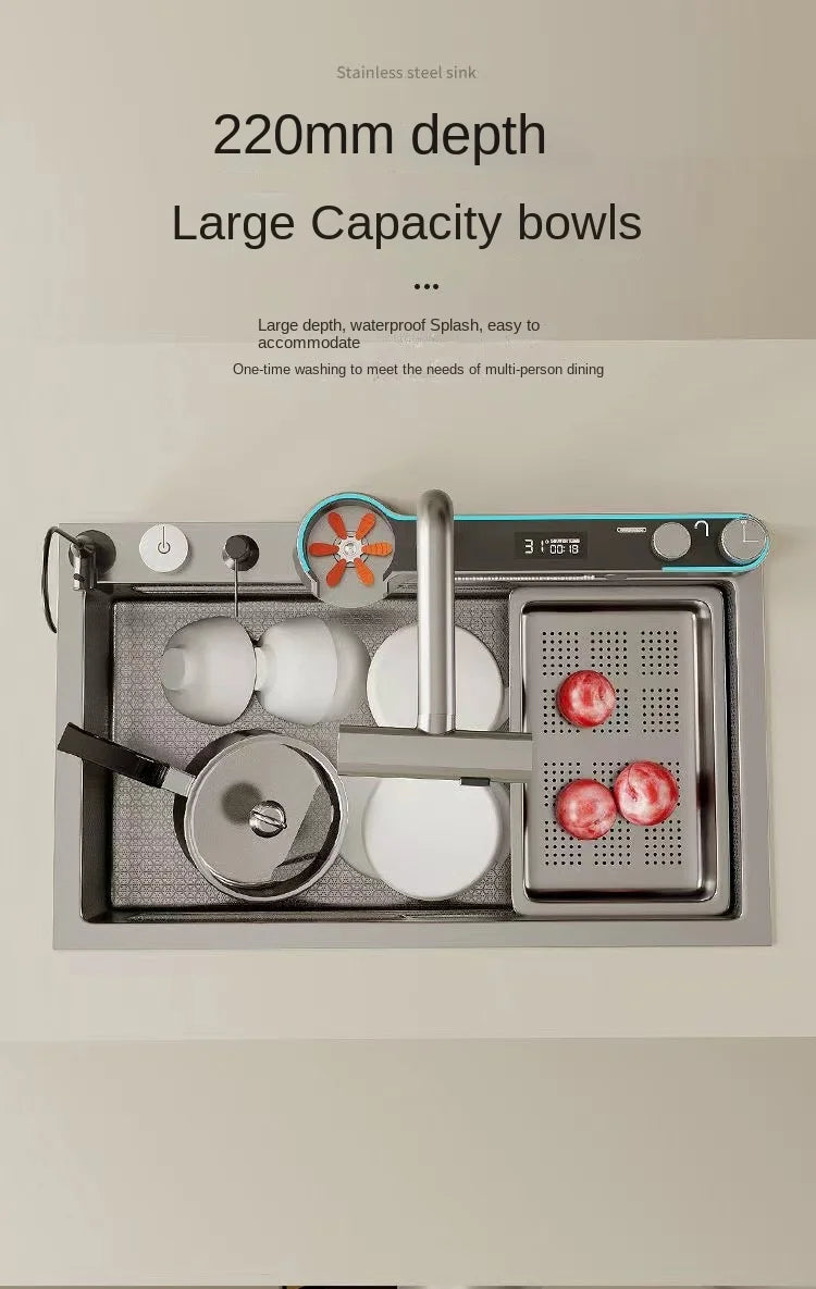 Digitalanzeige, Wasserfall, Einzelschlitz, Nano-Spüle aus Edelstahl 304, Geschirrspülen, Küche, multifunktionales Gemüsewaschbecken
