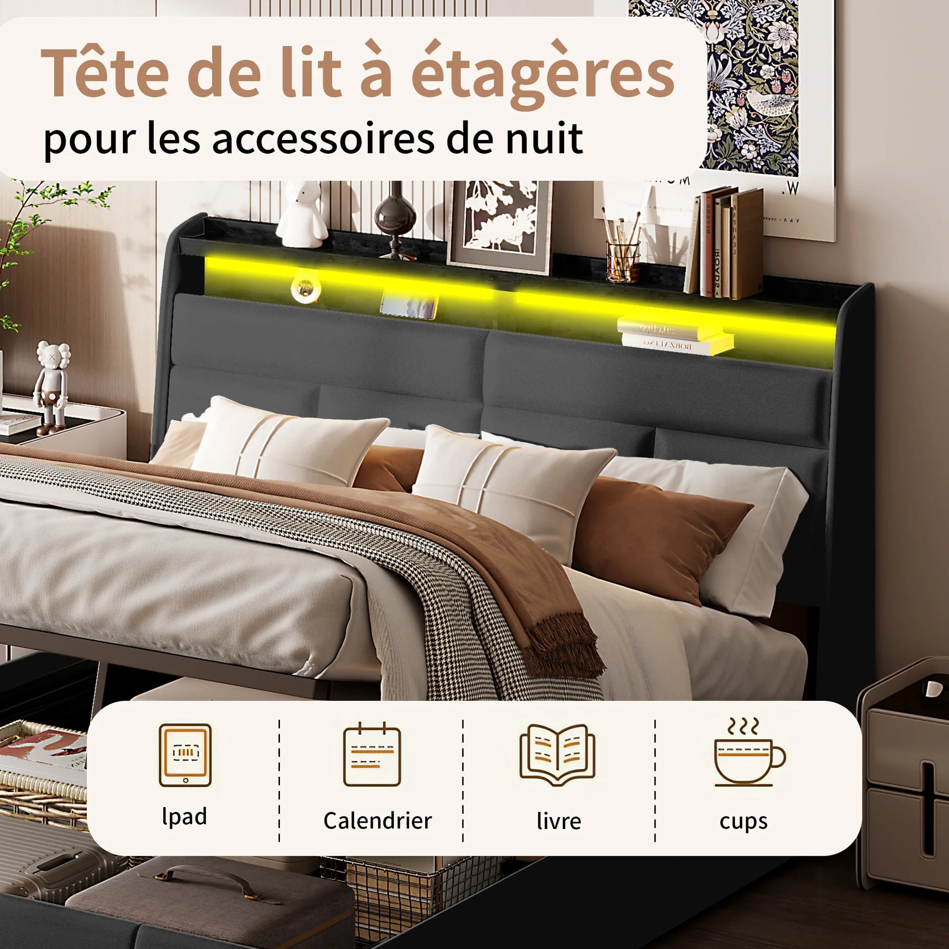 Doppelbett Polsterbett 160x200cm, Hydraulisch Bett mit Lattenrost aus Metallrahmen, Modernes Bettgestell mit Stauraum