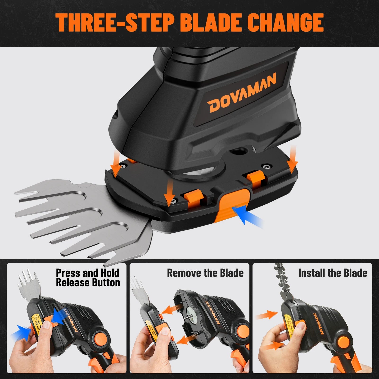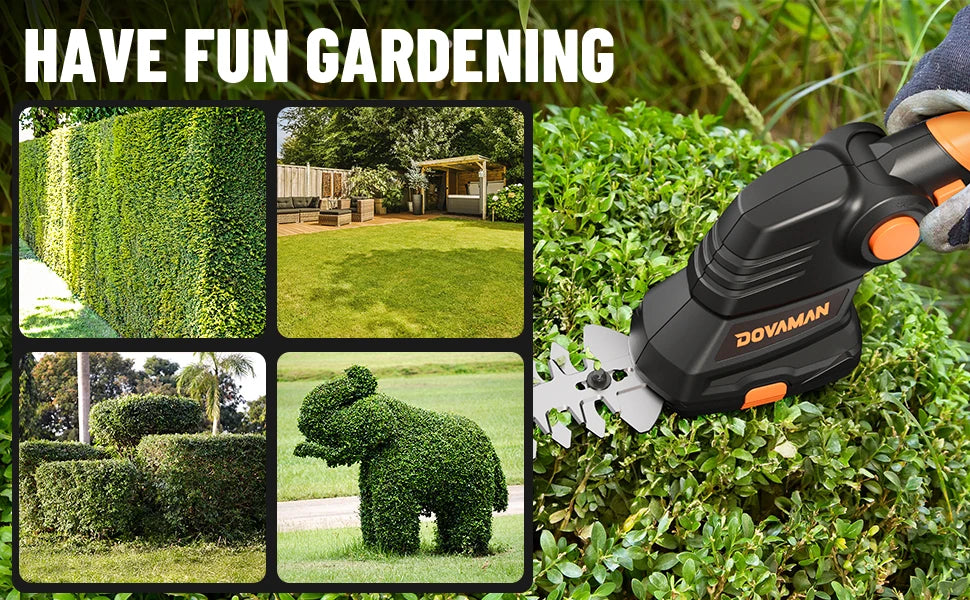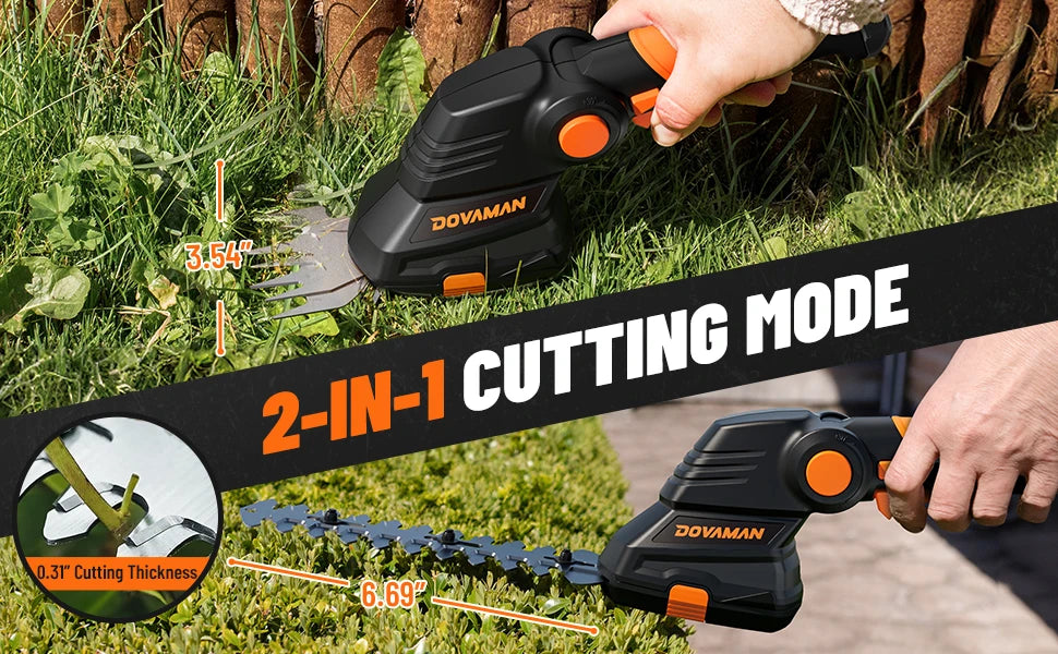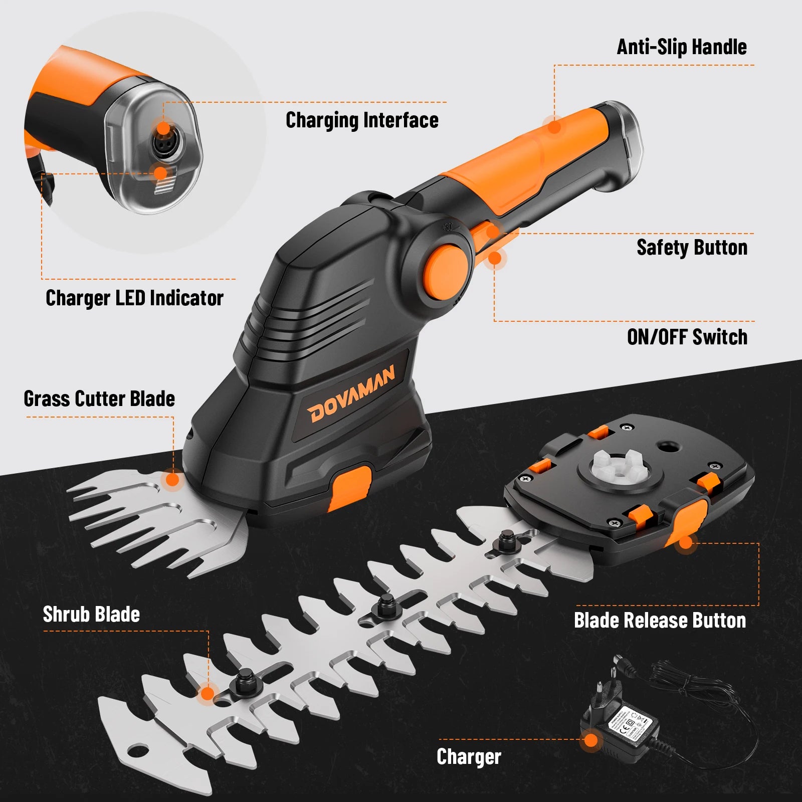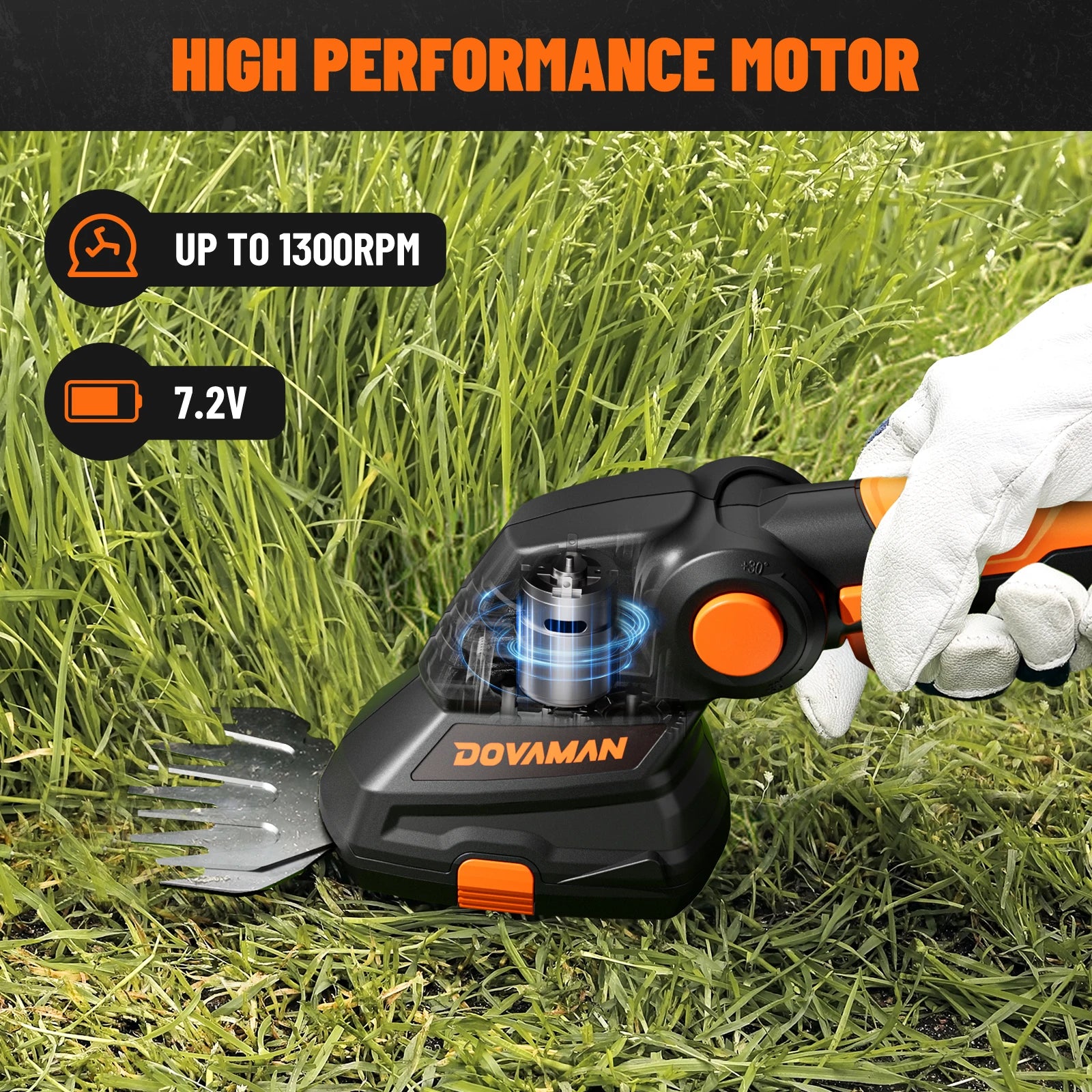 DOVAMAN 7,2 V Akku-Rasenschere, Griff mit drei Positionen, 80-Minuten-Schnellladung, 1500 mAh Akku, kompakte elektrische Schere