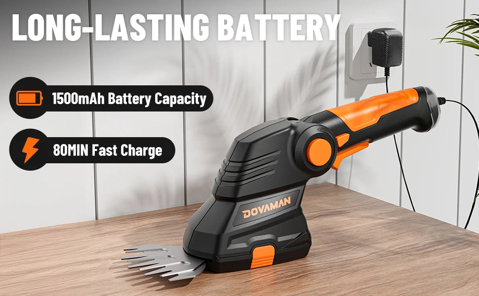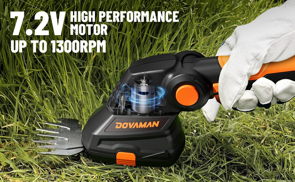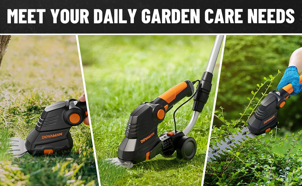 DOVAMANN 3-in-1 7,2 V Akku-Rasenschere mit Teleskopgriff, 2 Klingen (90/170 mm), zum Kanten und Gartenschneiden