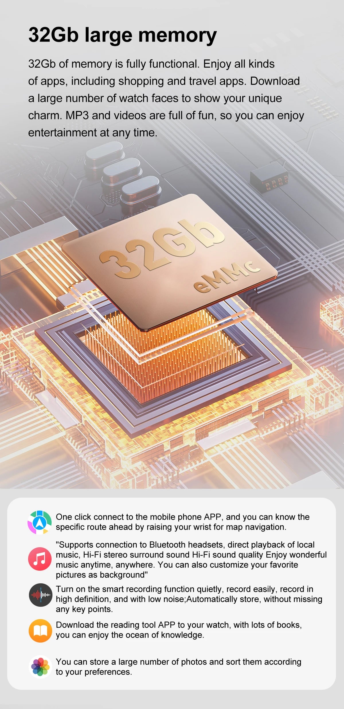 2.06 inch full touch screen: 4GB +32Gb Memory