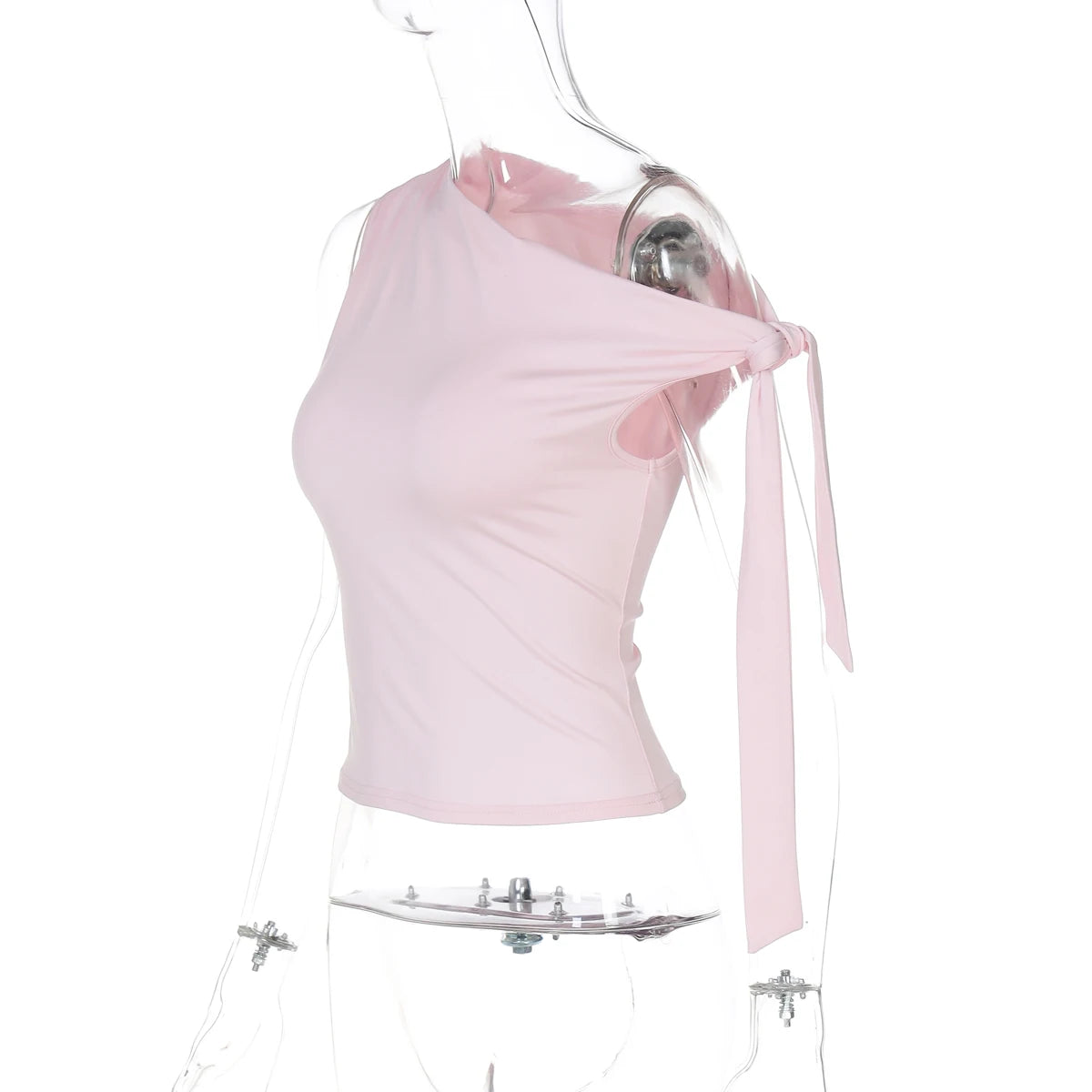 Dulzura Ladies Inclined Shoulder Sleeveless Slim Fit Lace Up Tank Top Solid Sexy Casual Y2K Top Party Club Street Summer Clothes