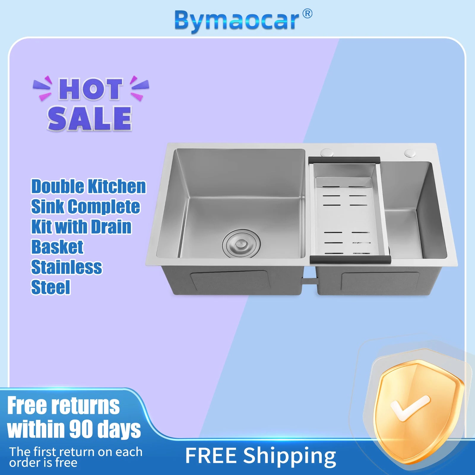 Edelstahl-Doppelschüssel-Küchenspüle für Zuhause, einfache Wäsche und Mehrzweckspüle mit zwei Installationsmethoden für den Garten