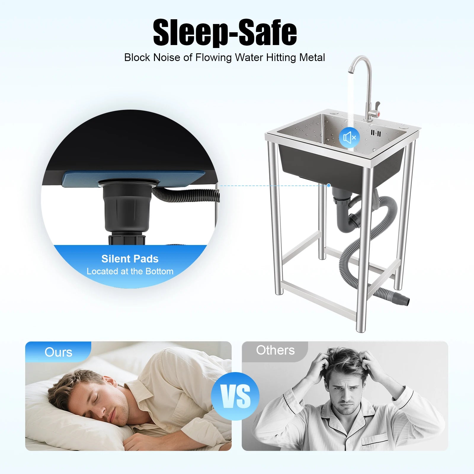 Edelstahl-Küchenspüle, Einzelbecken, 45,7 cm, mit Wasserhahn, geräuschloses Unterbau-Spülbecken aus gebürstetem 304-Waschbecken für die Küche, einfache Installation
