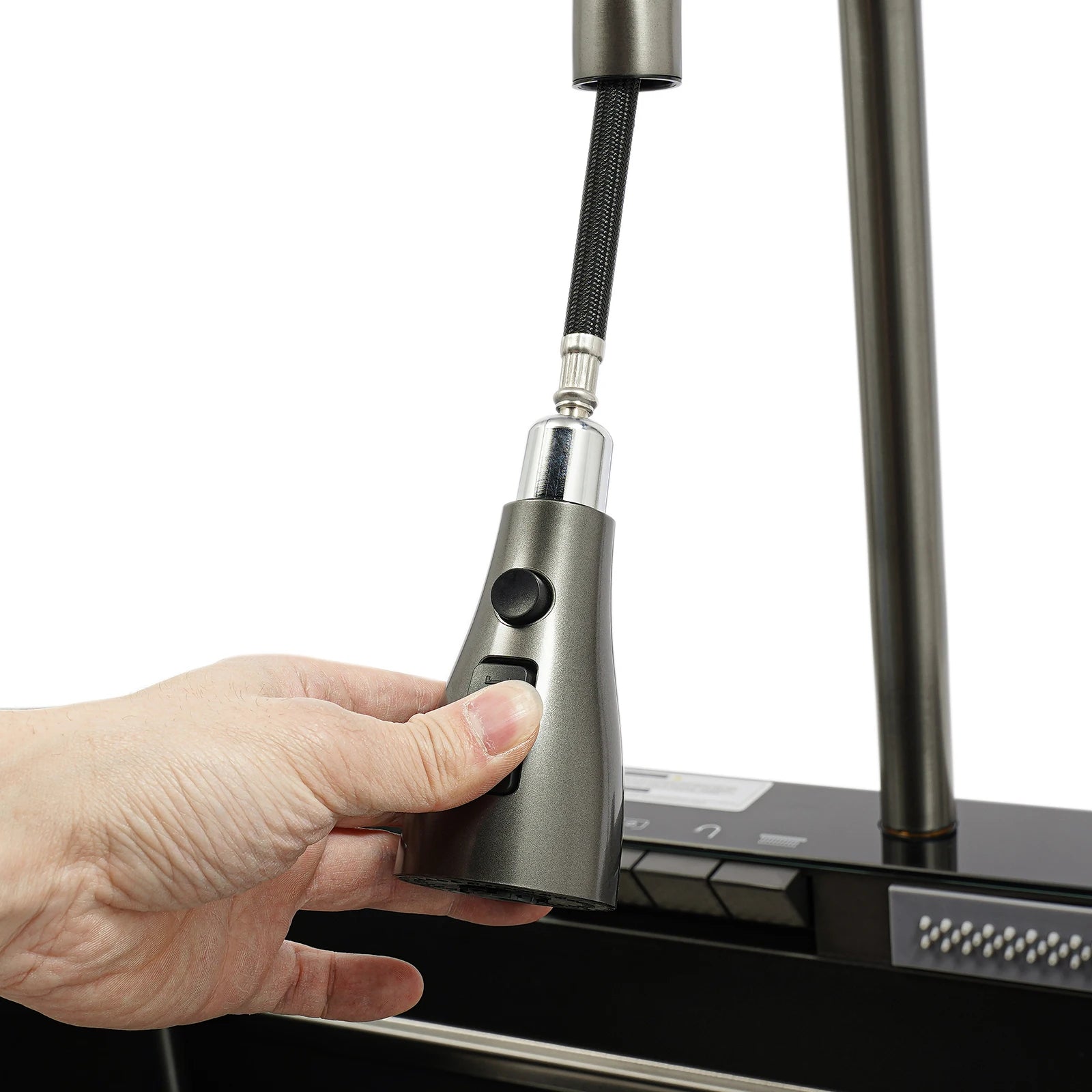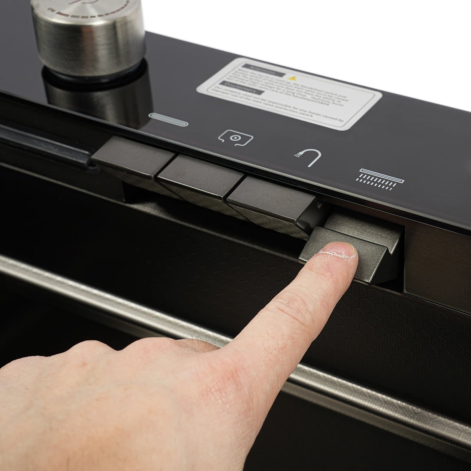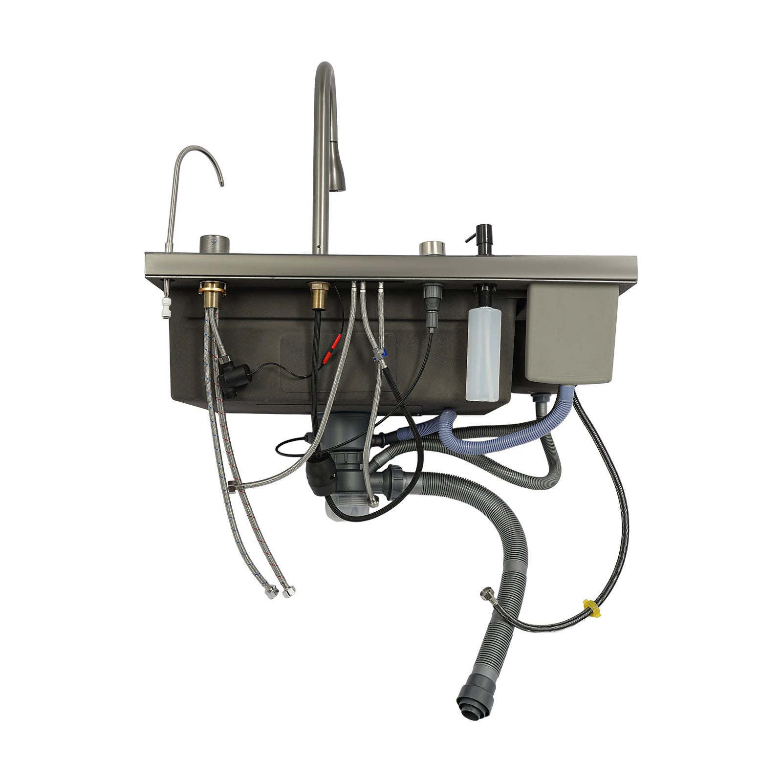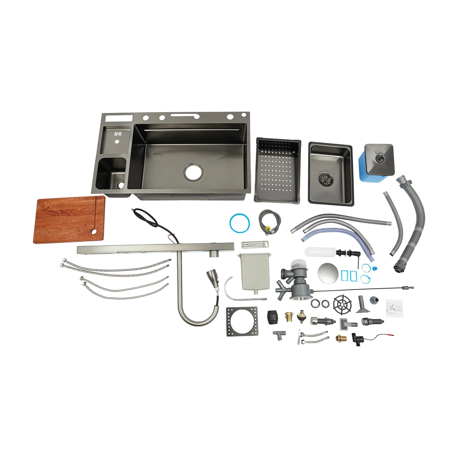 Edelstahl-Küchenspüle mit Abtropfkorb, ausziehbarer Wasserhahn, Schneidebrett, Tassenwascher, Digitalanzeige, 82 x 48 x 23 cm