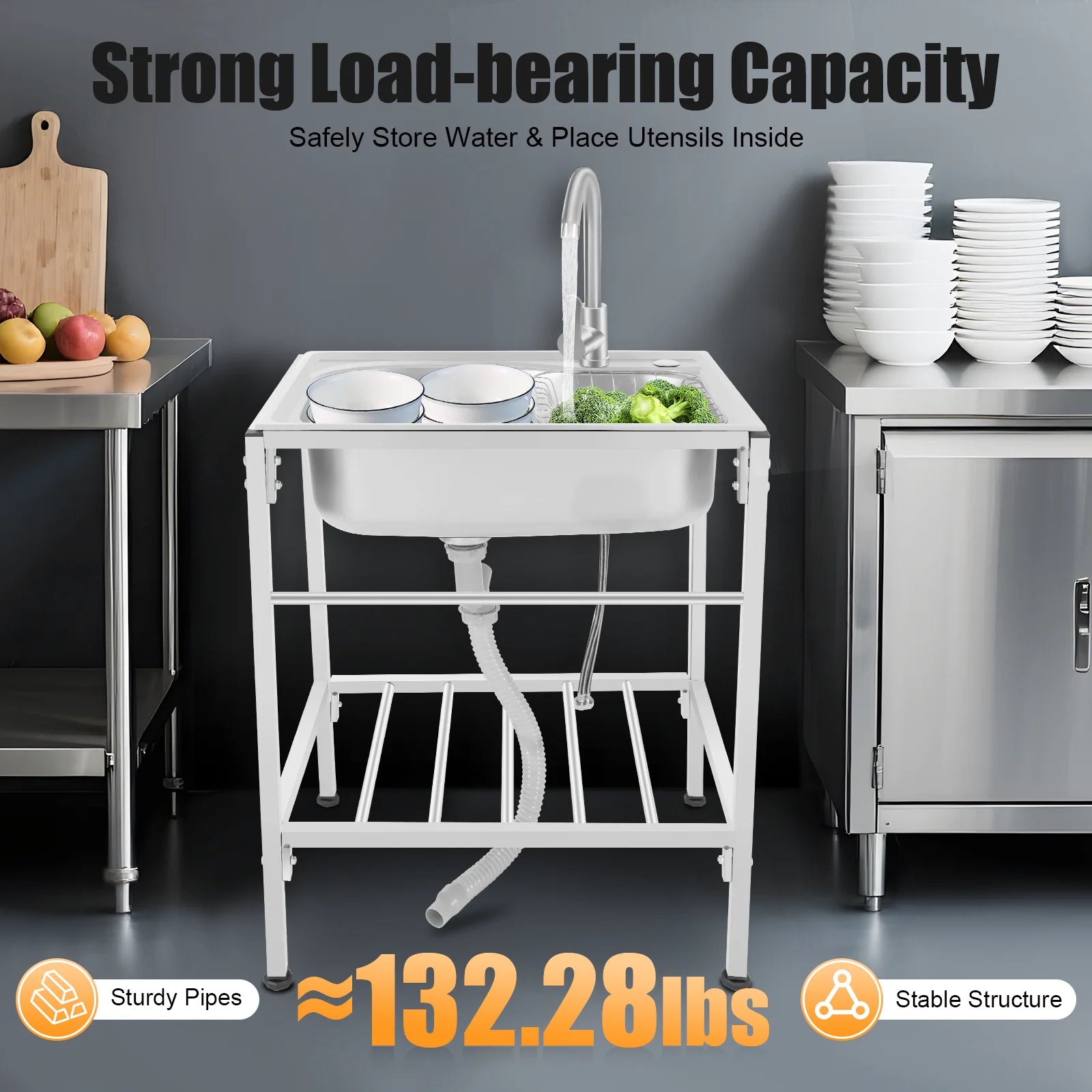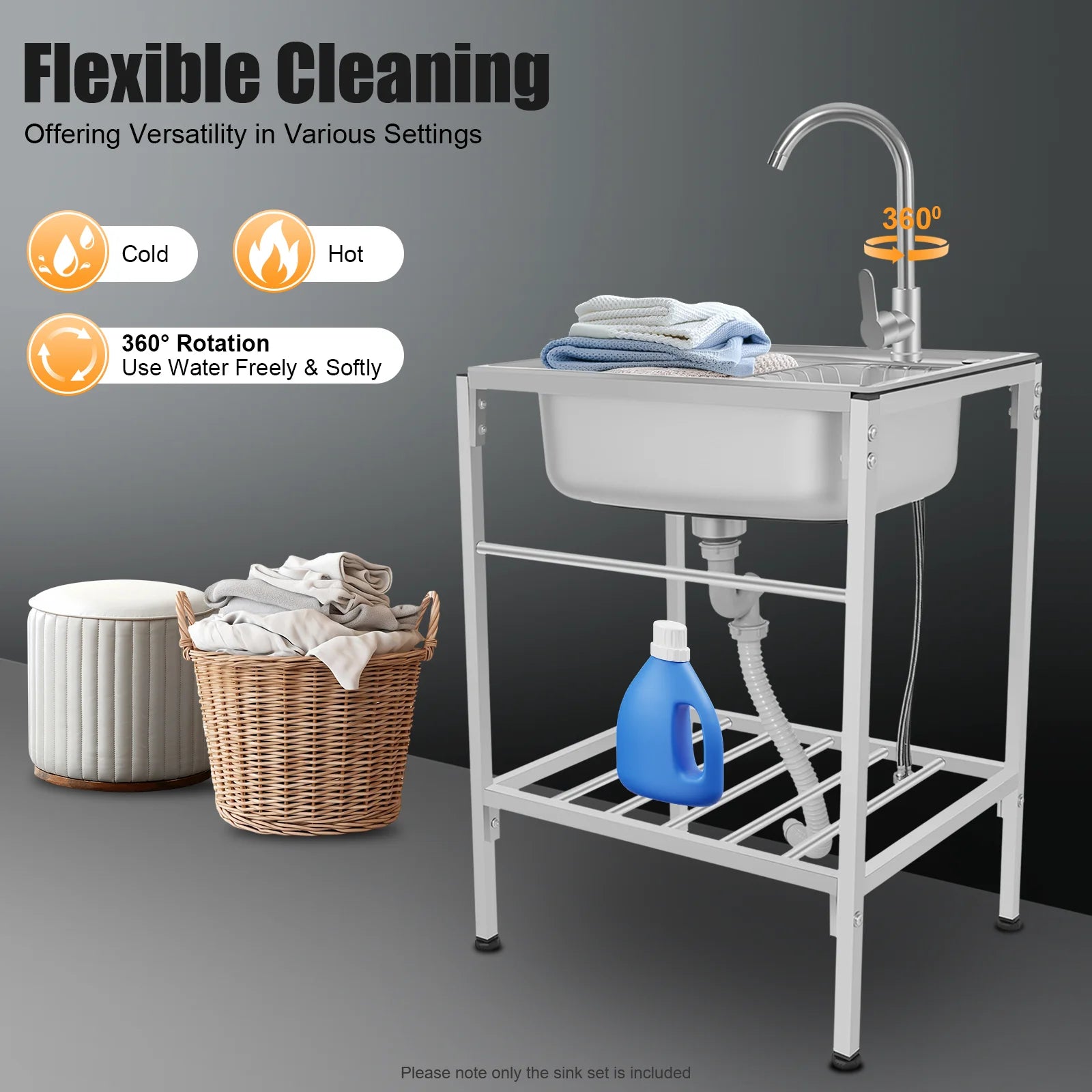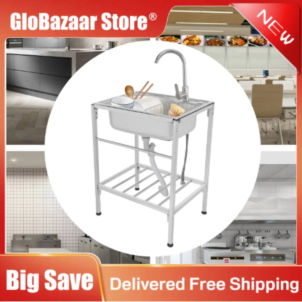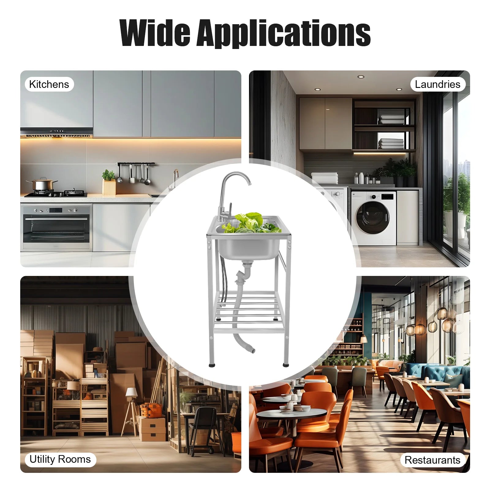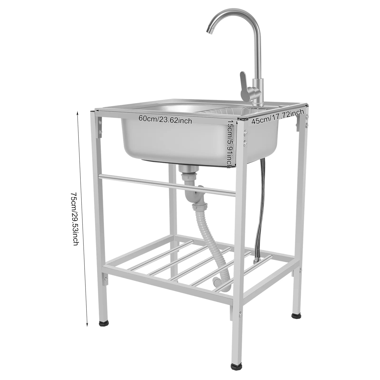 Edelstahl-Waschbecken mit Korb, einzelne Schüssel, kommerzielles Waschbecken, freistehendes Kalt- und Warmwasserhahn-Waschbecken für Küchen, Waschräume, Bars