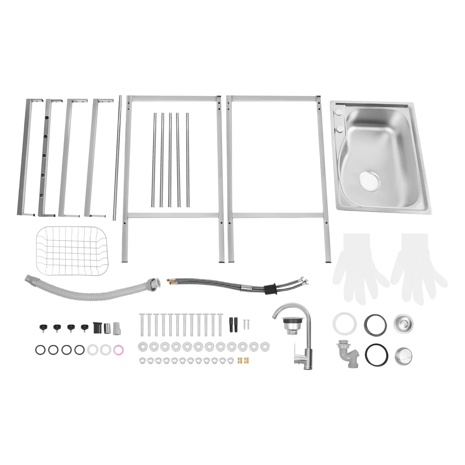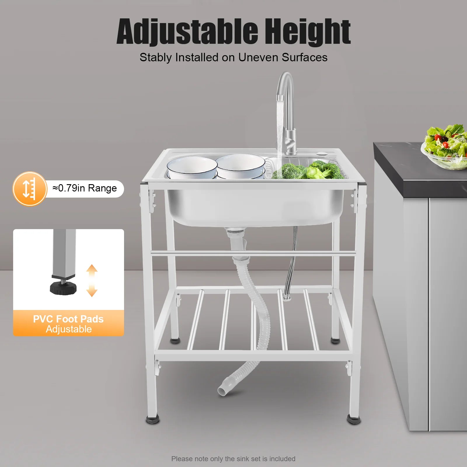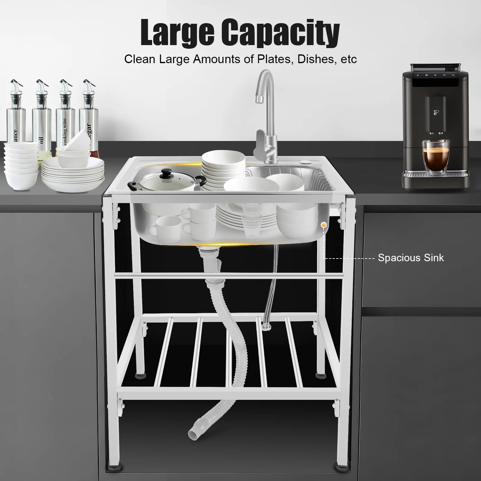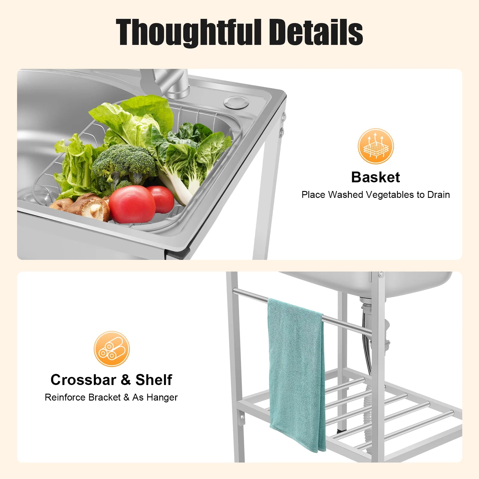 Edelstahl-Waschbecken mit Korb, einzelne Schüssel, kommerzielles Waschbecken, freistehendes Kalt- und Warmwasserhahn-Waschbecken für Küchen, Waschräume, Bars