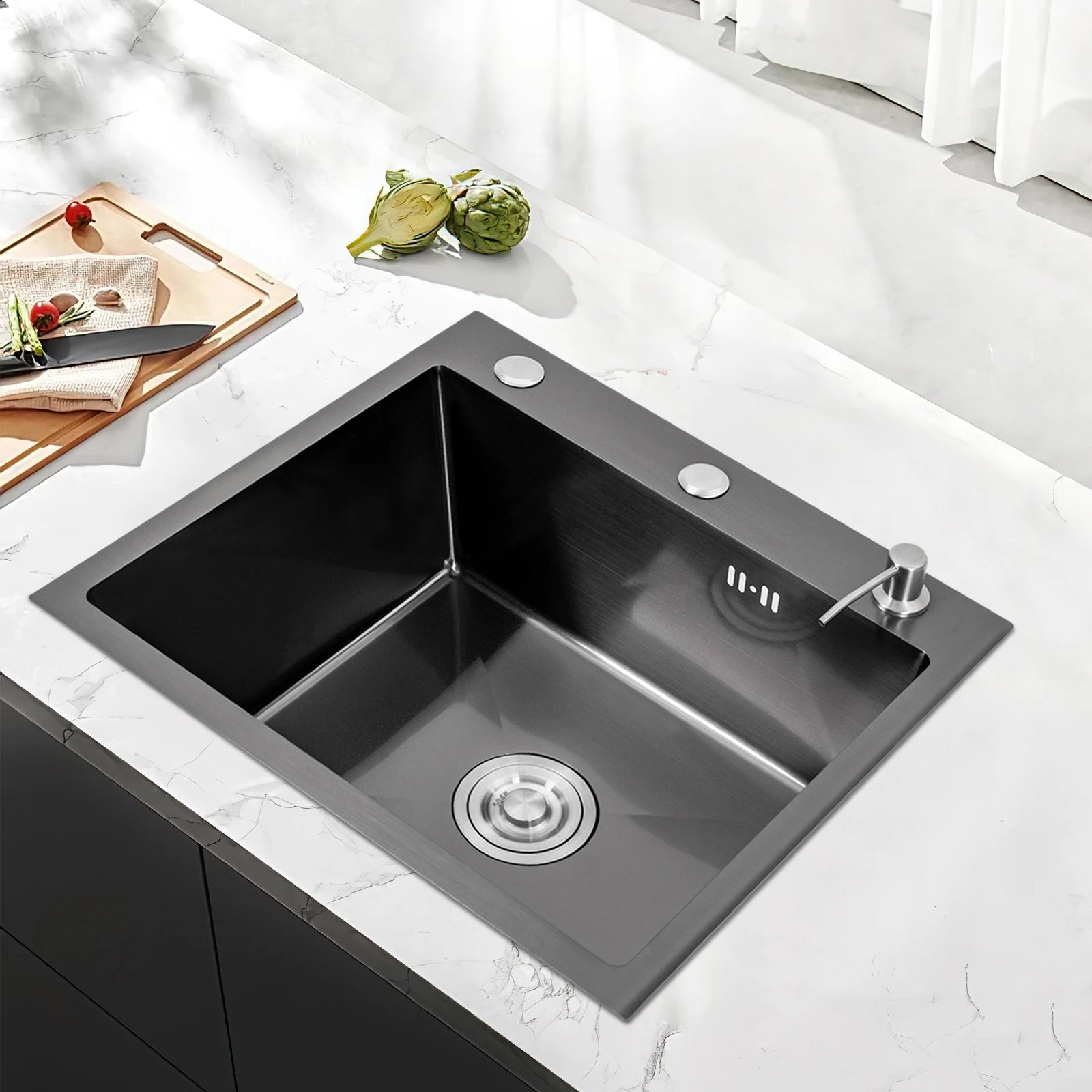 Edelstahls püle mit Seifensp ender Küchen spüle mit Rohr ohne Wasserhahn