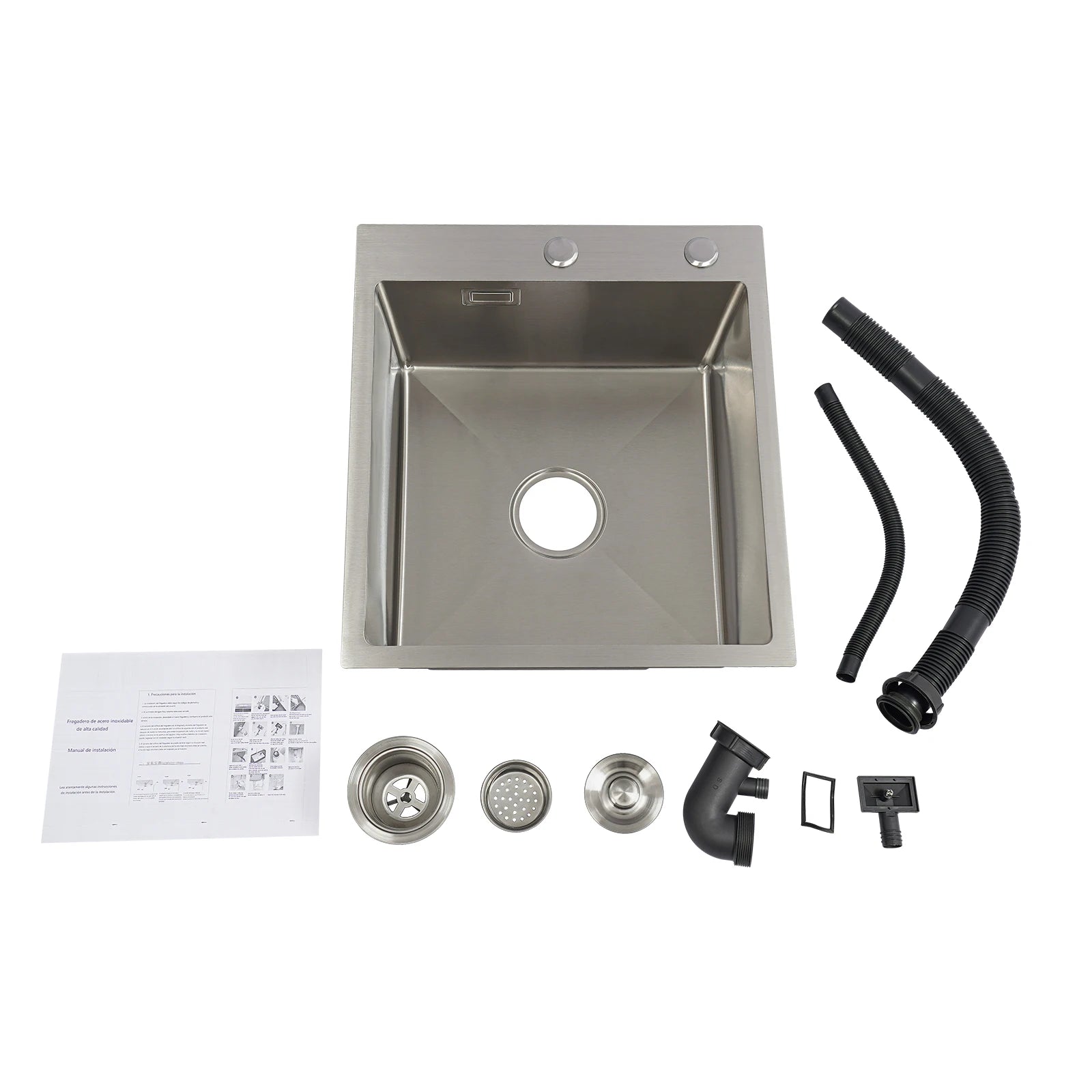 Edelstahlspüle, 45 x 50 cm, moderne Küchenspüle, Küchenspüle mit Abflussrohr, X-förmige Wassergleitungsleitung