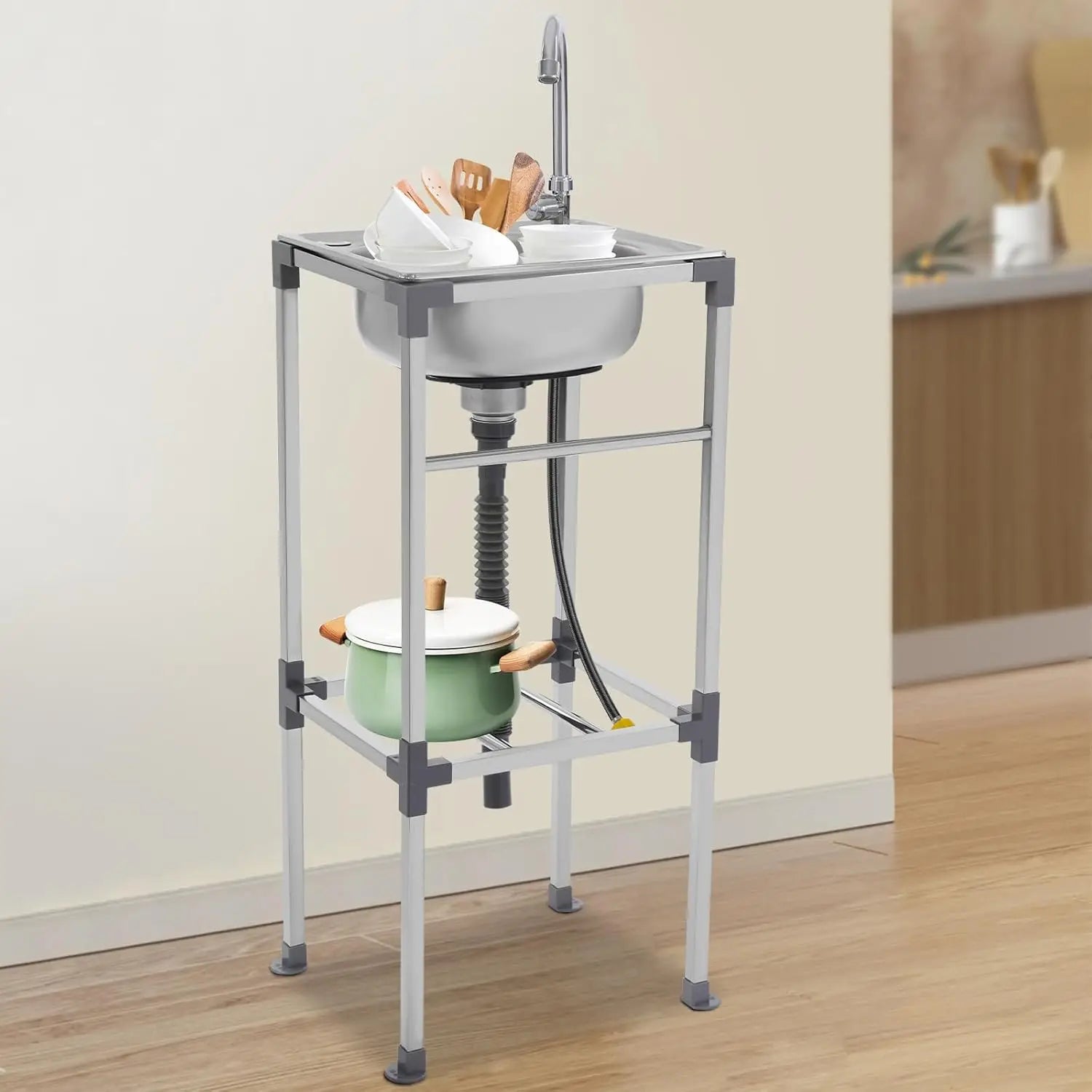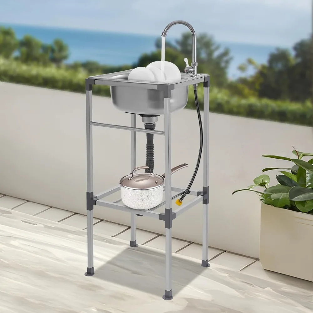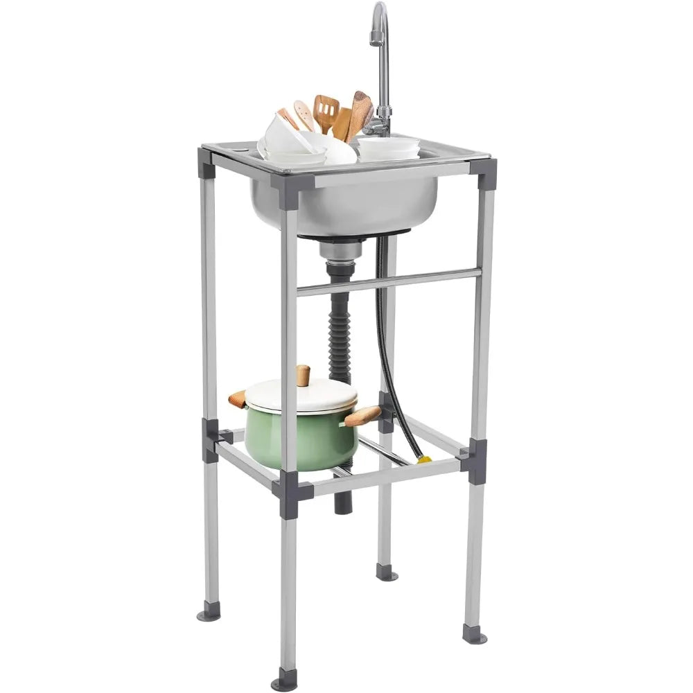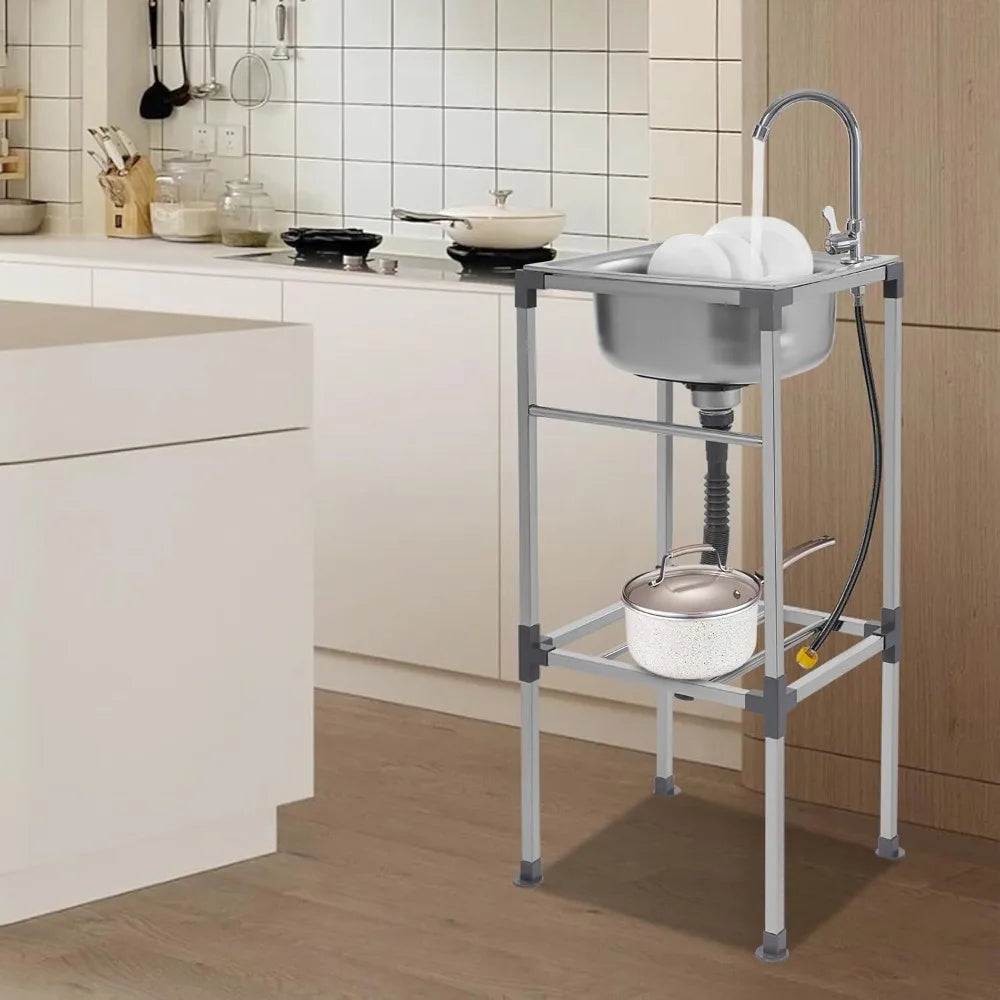 Edelstahlspüle, freistehendes Spülbecken mit 1 Becken, mobiles Spülbecken, Küchenspüle mit Wasserhahn, 42 x 37 x 83 cm, für Bars, Restaurant, Küche