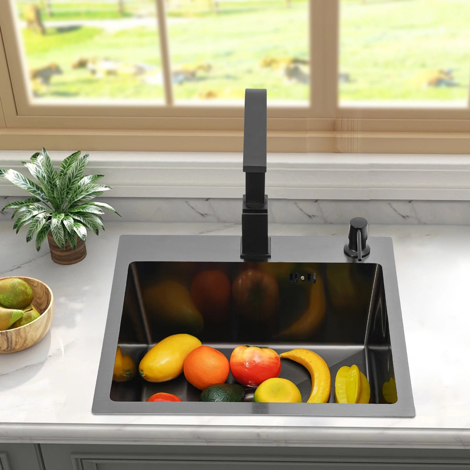 Edelstahlspüle, gut abdichtendes modernes Küchenspülbecken mit Abflusskorb für Häuser/Restaurants/Wäschezimmer
