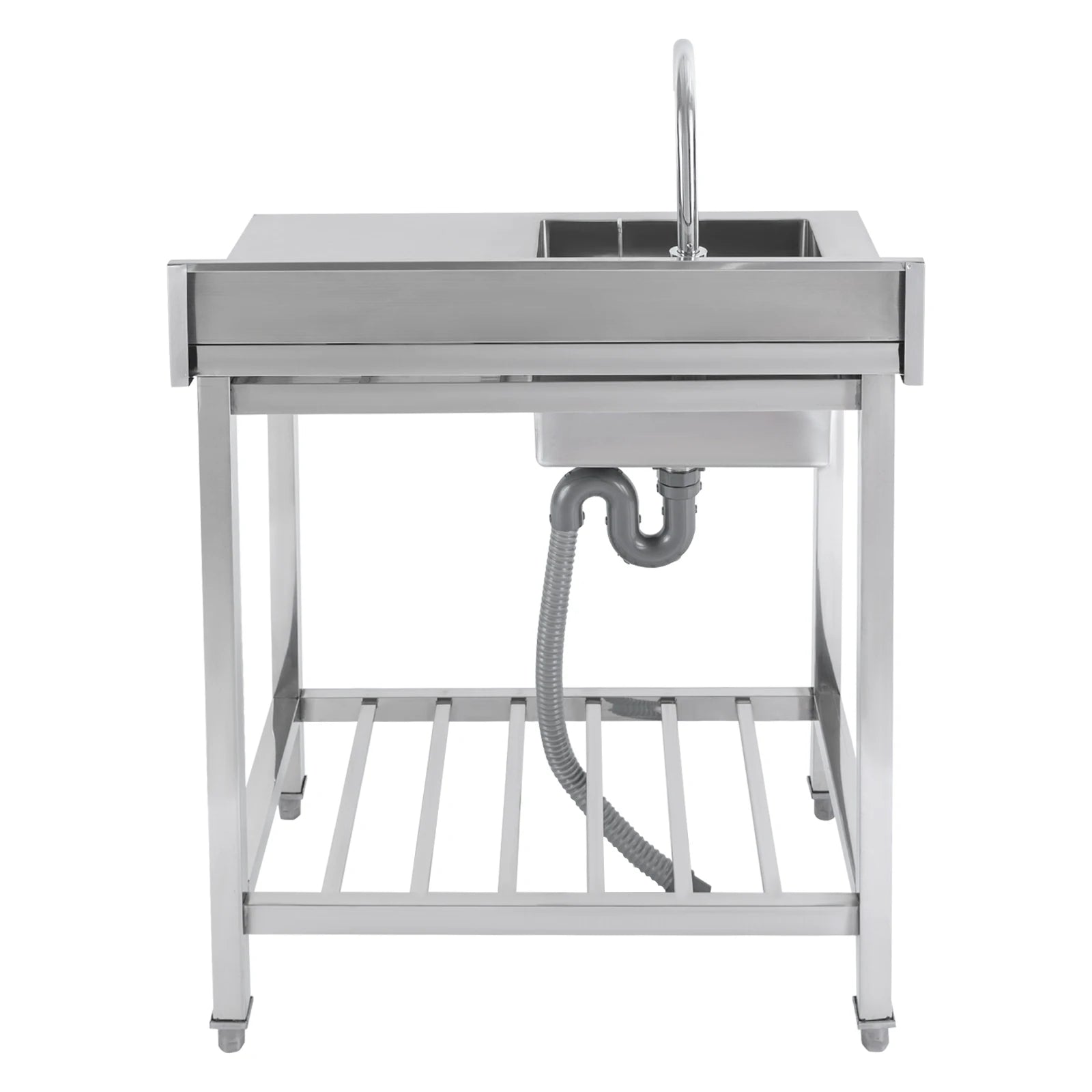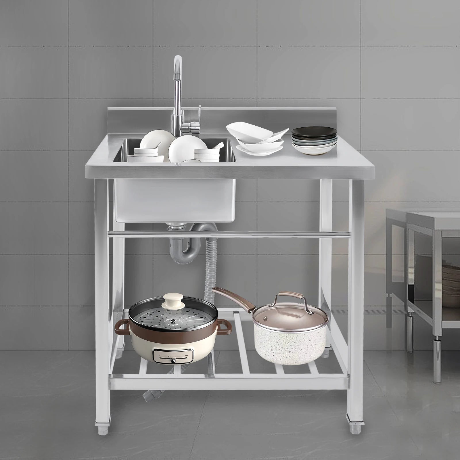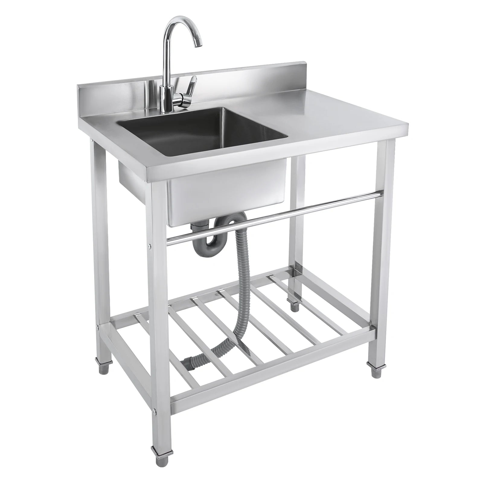 Einzelwaschbecken aus Edelstahl, kommerzielle Restaurant-Küchenspüle, freistehende Küchenspüle mit 360° ° Wasserhahn und 2 Einlassrohren