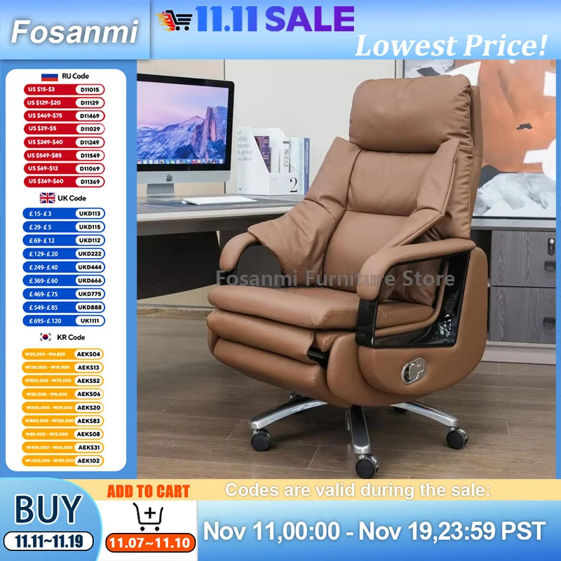 Elektrischer, bequemer Boss-Bürostuhl, Leder, verstellbar, weich, Heimcomputerstühle, ergonomischer Gaming-Schreibtisch, Drehstuhl
