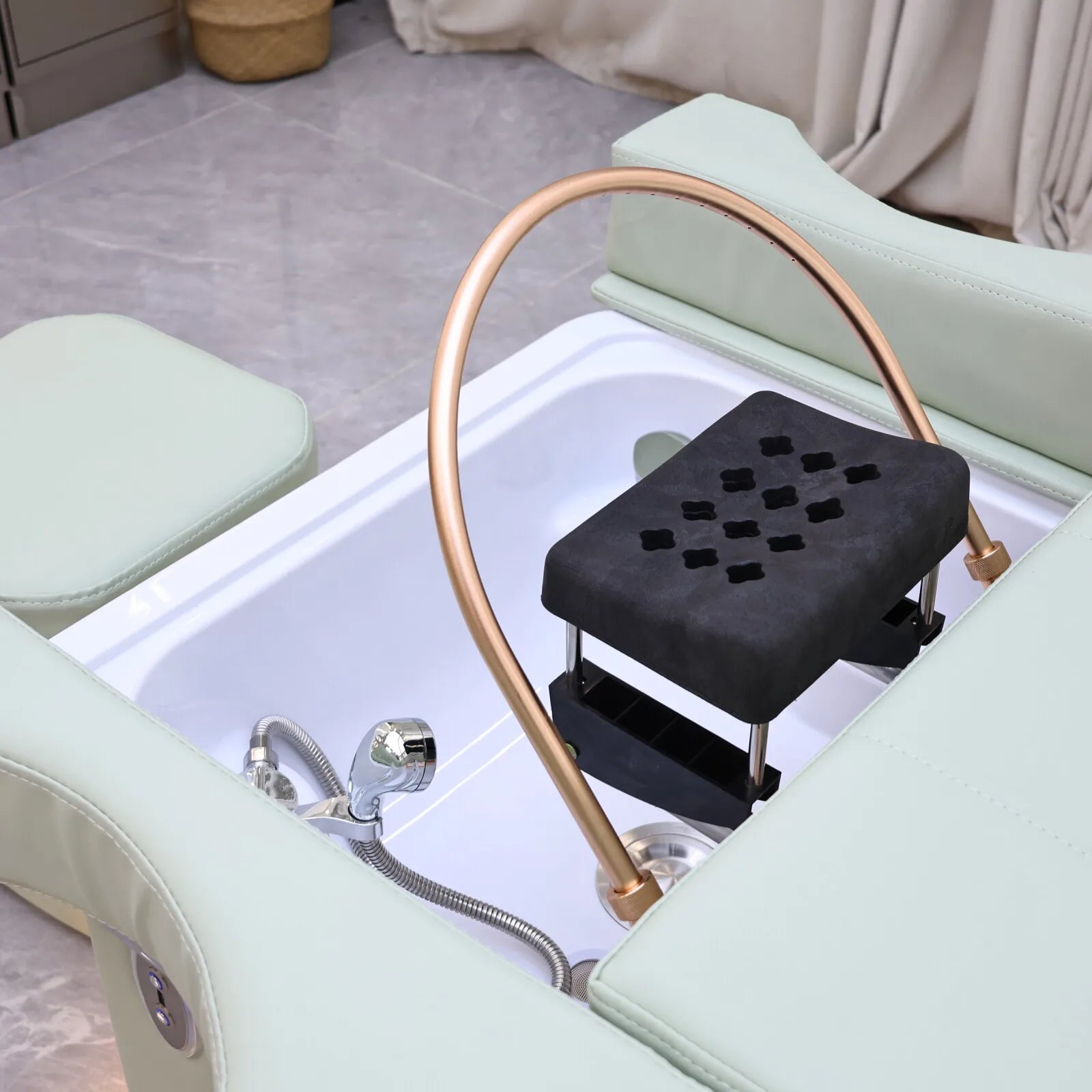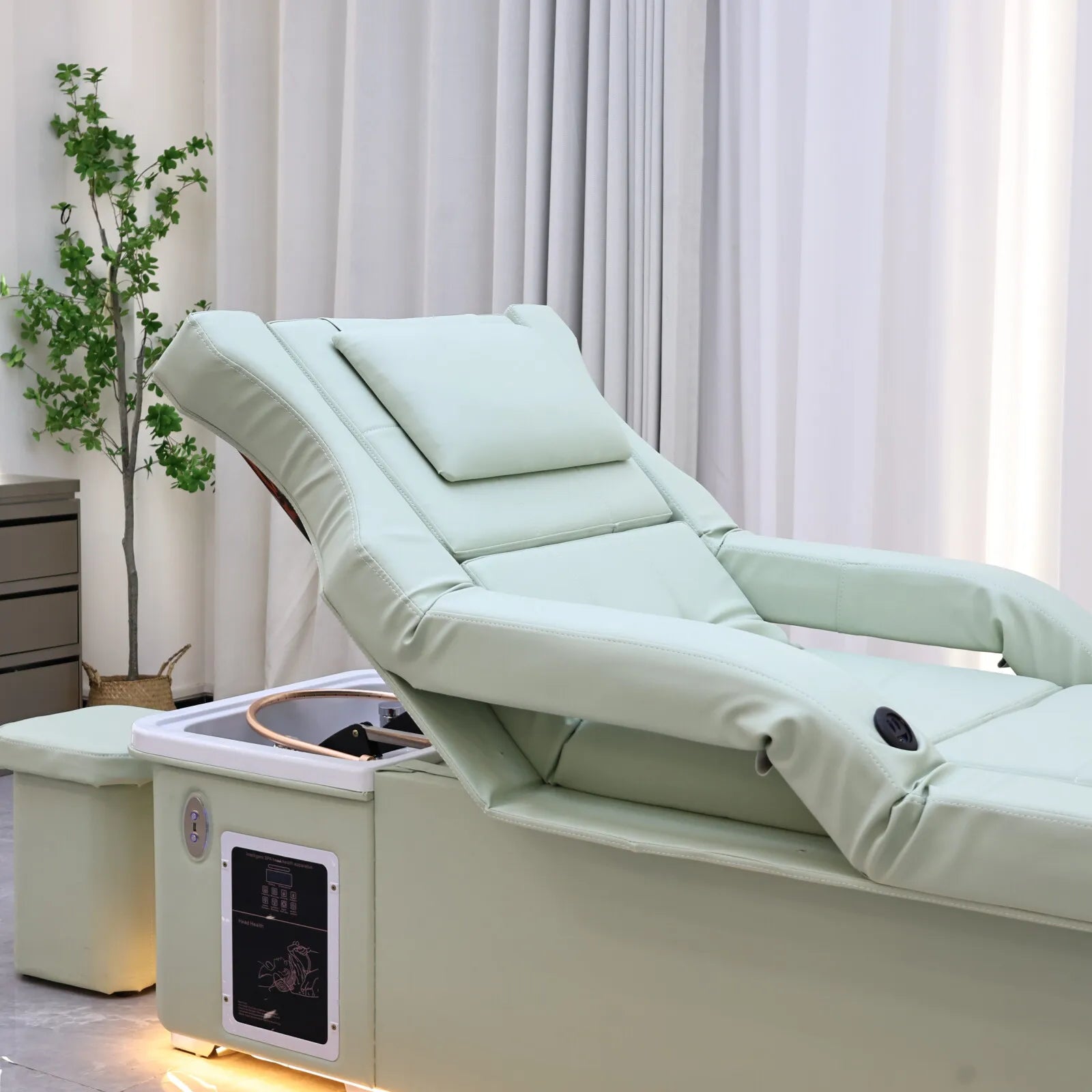 Elektrisches Lift-Shampoo-Bett, All-in-One-SPA-Salonmöbel mit Massage- und Wassercirculation, Waschbecken, Kopfbegasung und Fußbad