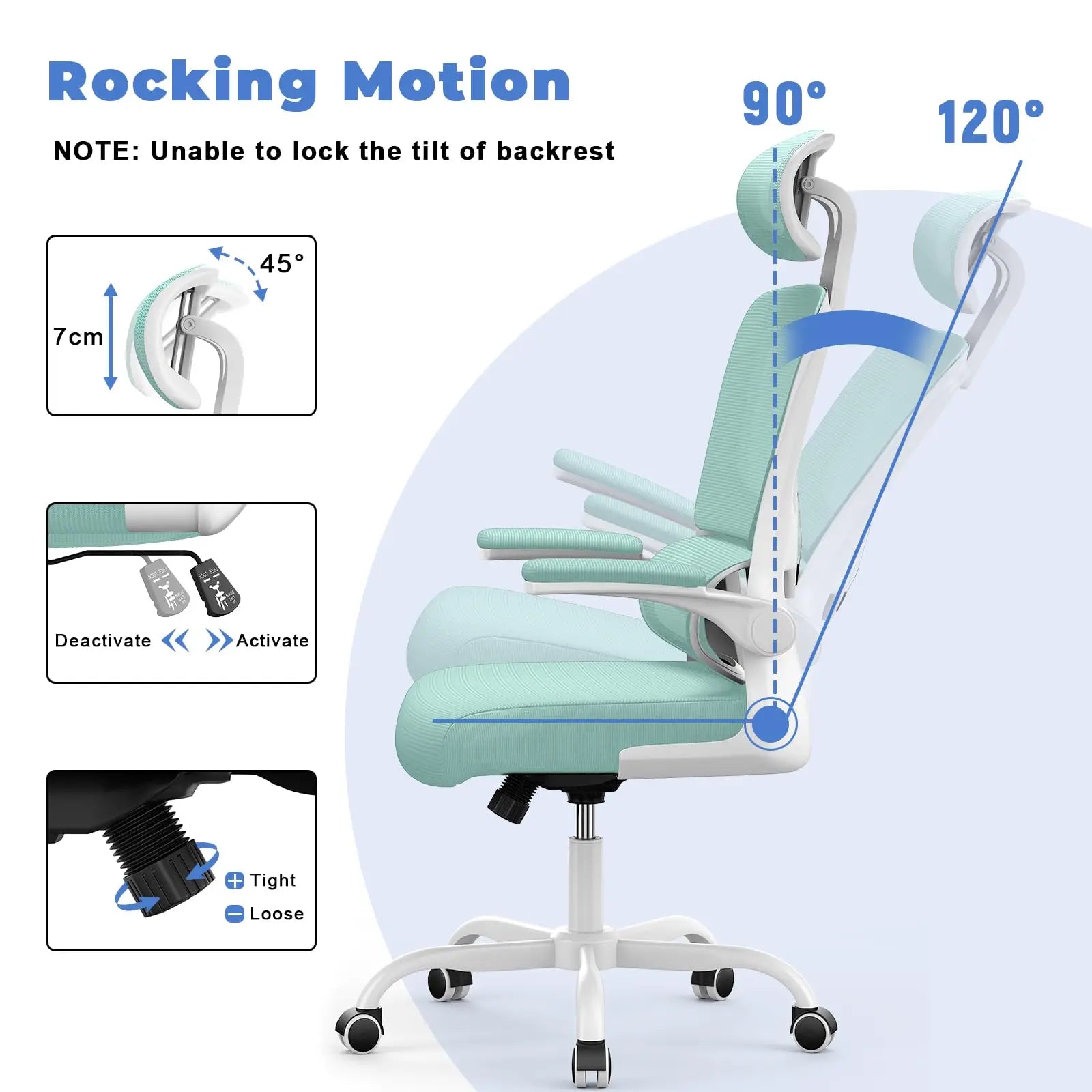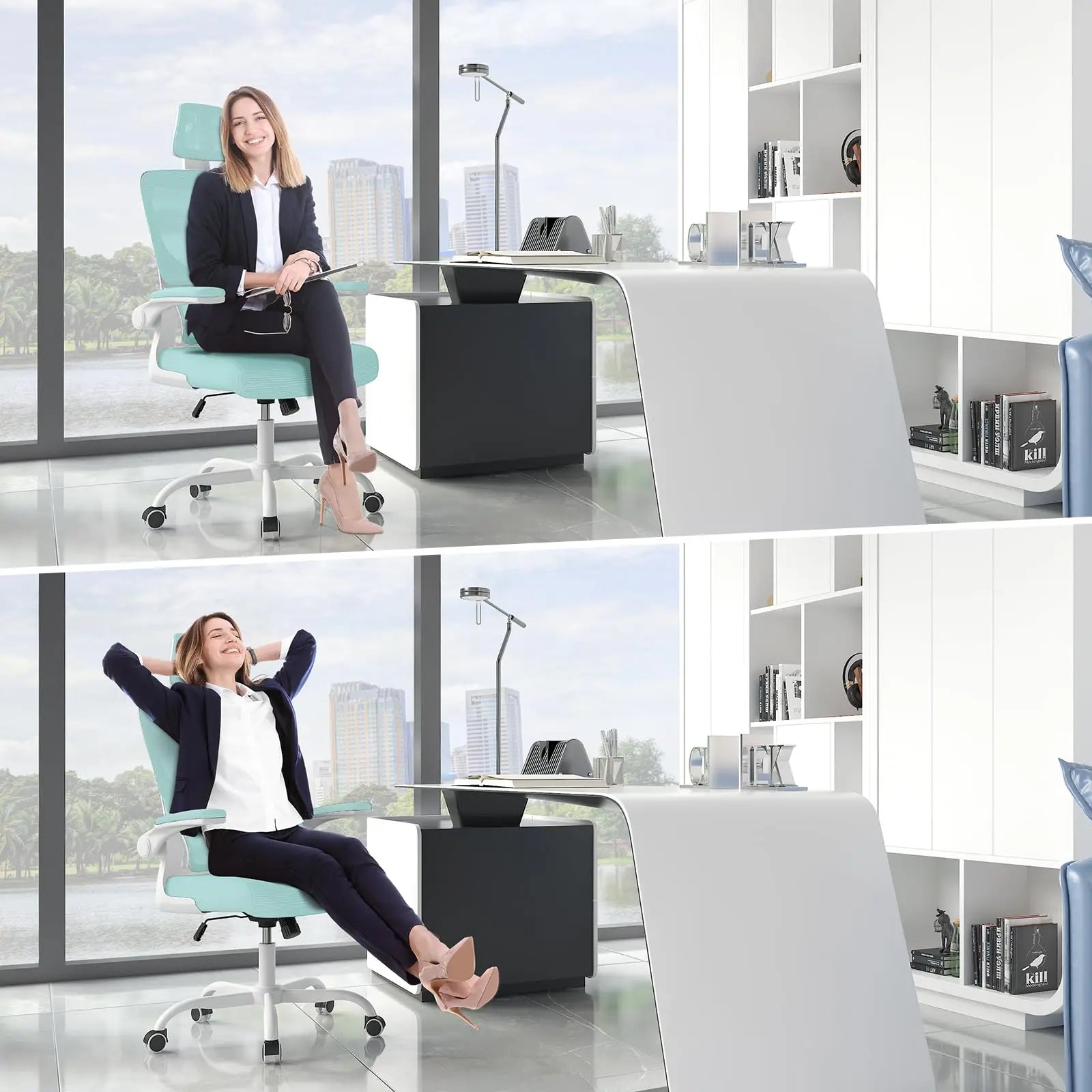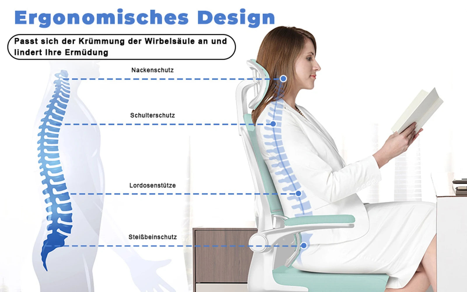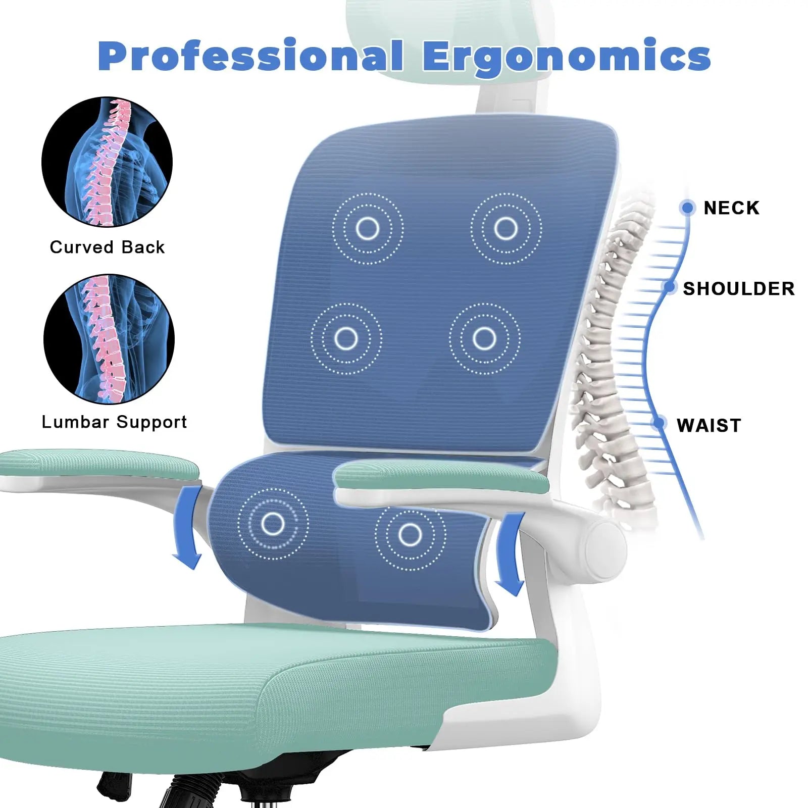 Ergonomic Office Chair, Desk Chair with Folding Armrests, Height-Adjustable, Breathable Backrest, Swivel Chair 360°