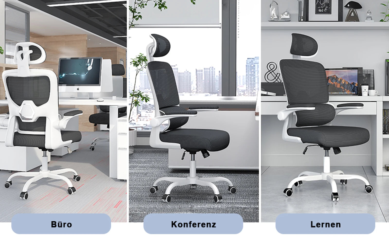 Ergonomic Office Chair Desk Chair with Folding Armrests Height-Adjustable Breathable Backrest Swivel Gaming Chair