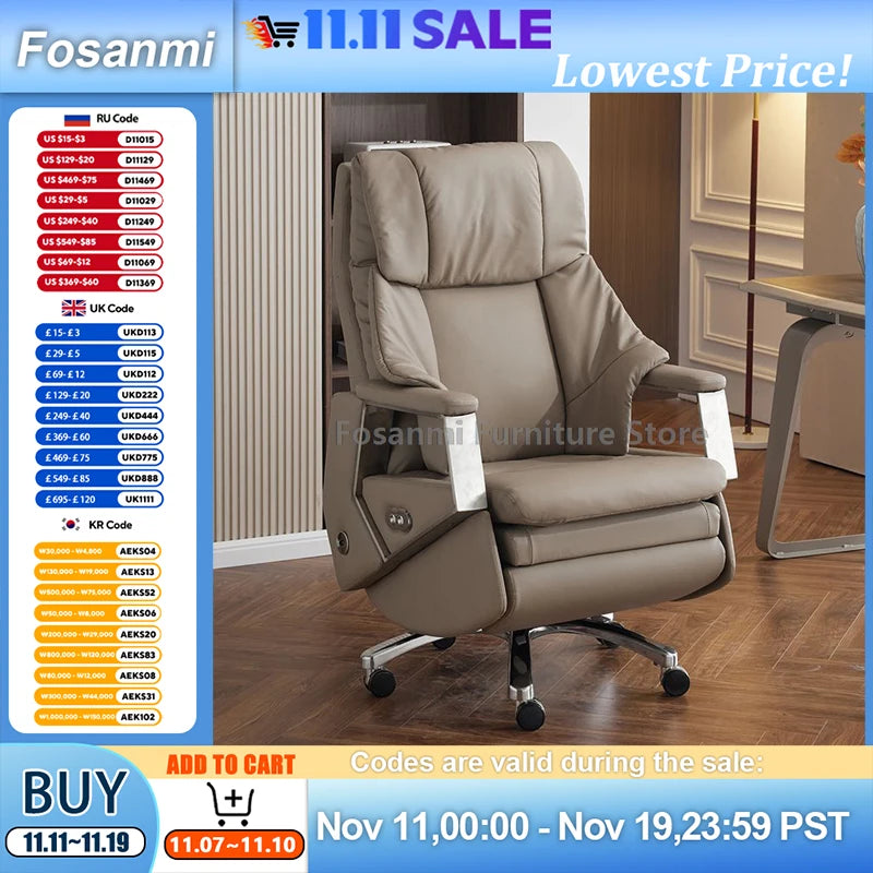 Ergonomischer Büro-Elektrostuhl, verstellbare Rücklehne und Höhe, Leder-Computerstuhl, Gamer Home, bequeme drehbare Schreibtischstühle