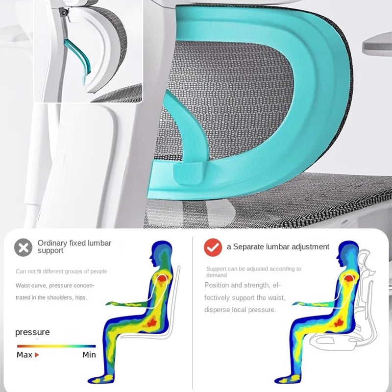 Ergonomischer Computerstuhl, Heimbüro, Lordosenstütze, Gaming-Stuhl, Liegestuhl aus Latex, atmungsaktives Mesh, 4D-verstellbare Armlehne