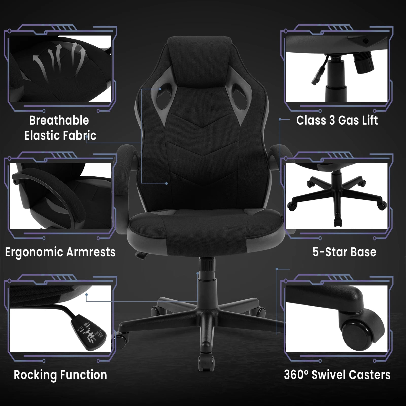 Ergonomisches Design, Gaming-Stuhl, Gamer-Sessel, Büro-Computerstuhl, Neigungsmechanismus, höhenverstellbar, 360° ° Drehbare hohe Rückenlehne