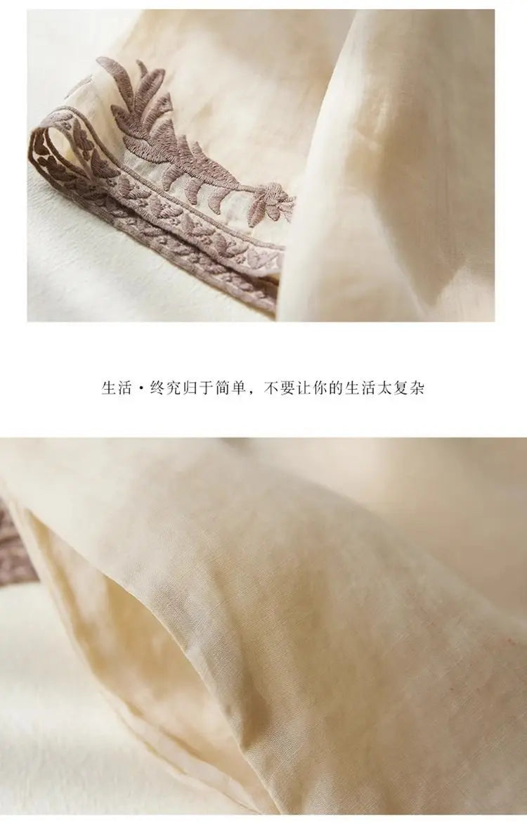 Ethnisches Vintage-Kurzarmkleid aus schwerer Stickerei aus Baumwolle und Leinen für Damen, lockeres langes Sommerkleid mit V-Ausschnitt und elegantem Stil