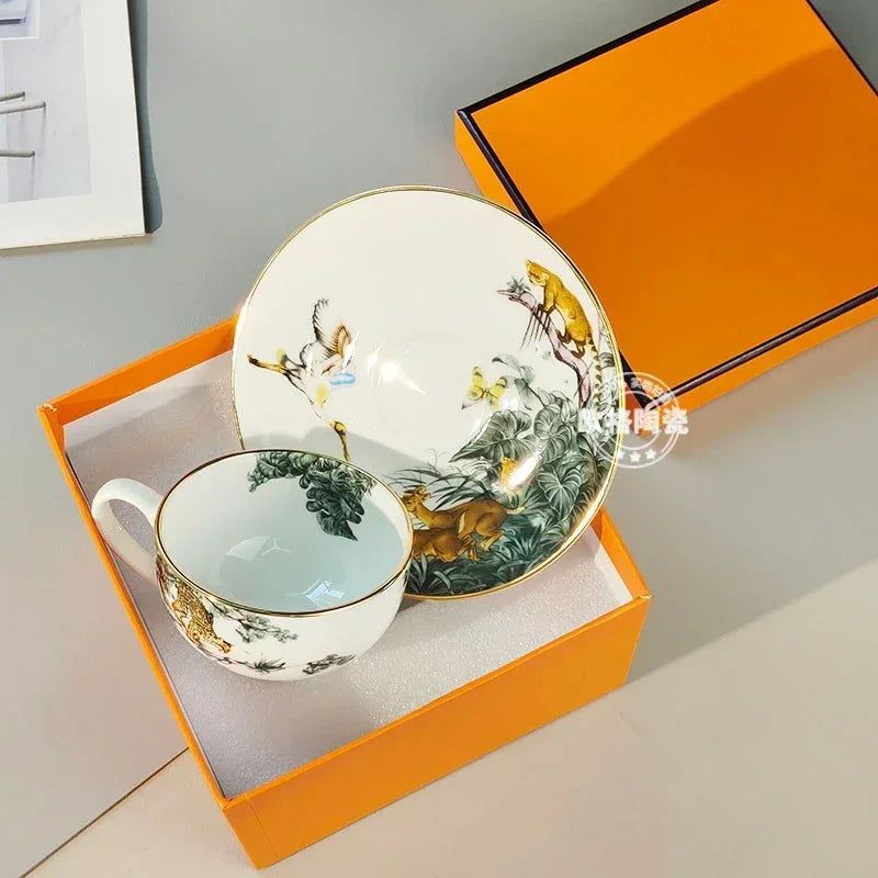 European ceramic western dinner plate, jungle set, steak plate, Coffee cup, afternoon , personalized gift set