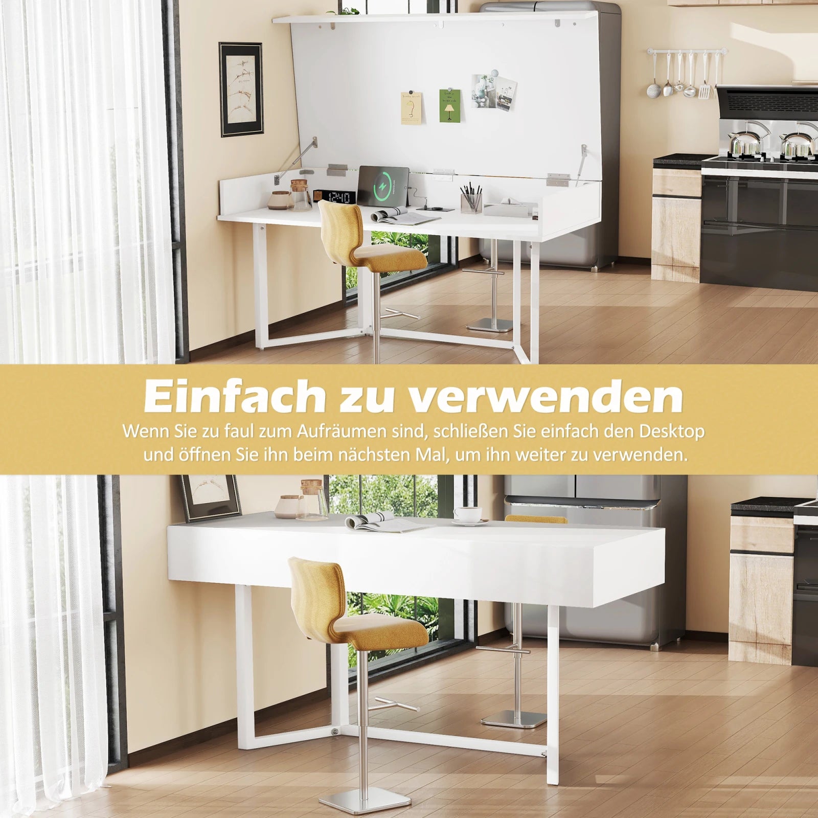 Faltbarer Schreibtisch 120×55cm – Multifunktional, klappbar, mit europäischen Steckdosen, zum Verstecken auf dem Schreibtisch