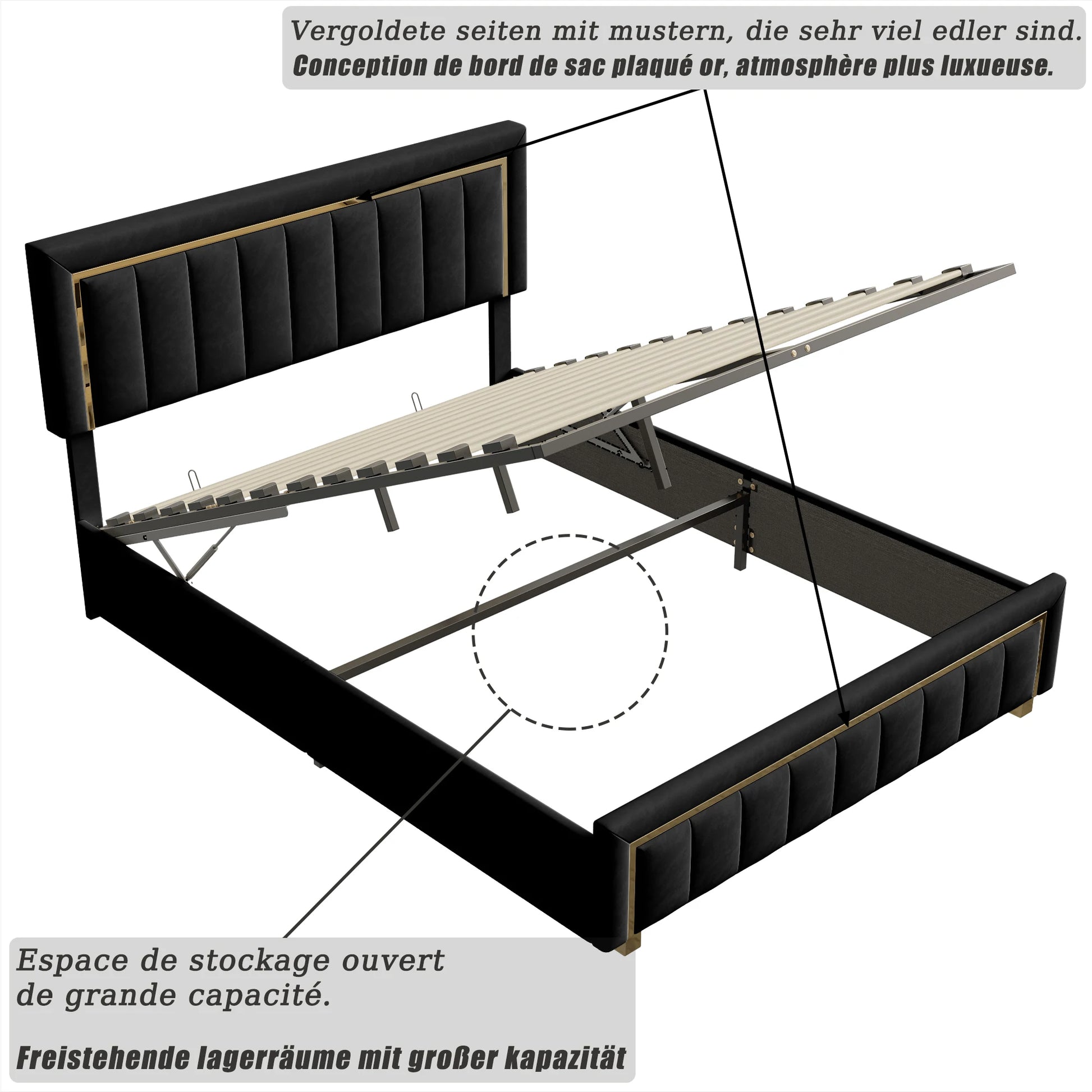 Fangange Polsterbett 40 x 200 cm, hydraulisches Bett mit Lattenrost, Stauraumbett mit Kopfteil, Funktionsbett, Samt, ohne Matratze