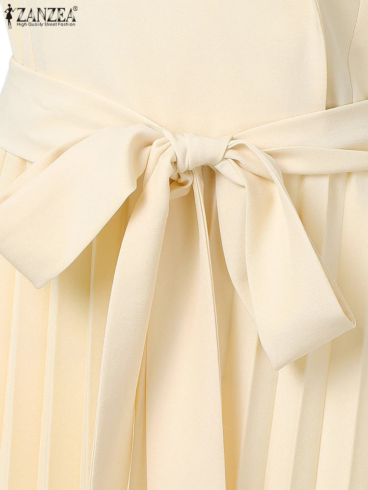 Fashion Women Jumpsuits 2025 ZANZEA Summer Rompers Elegant Wide Leg Work OL Overalls V Neck Sleeveless Pleated Playsuit Trousers