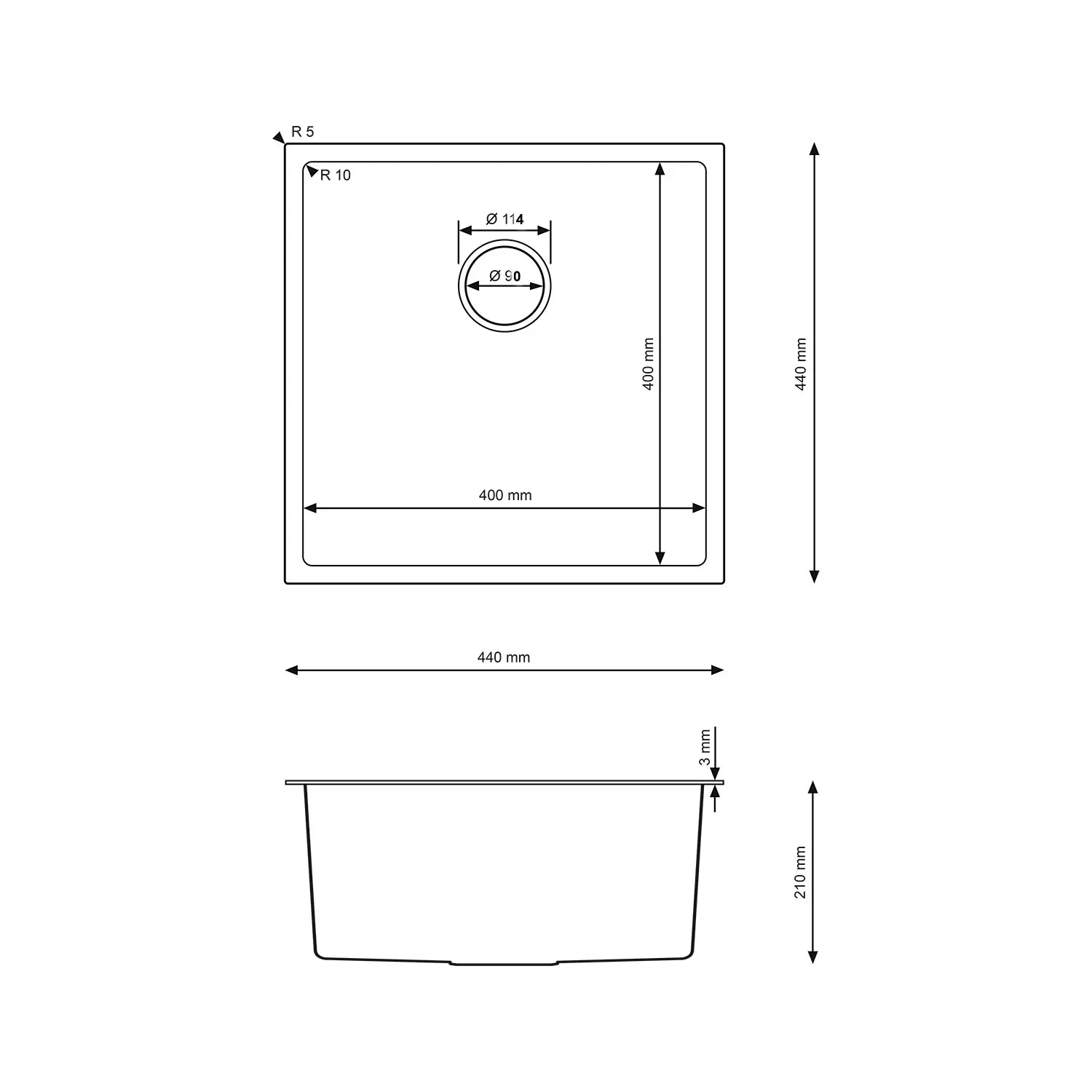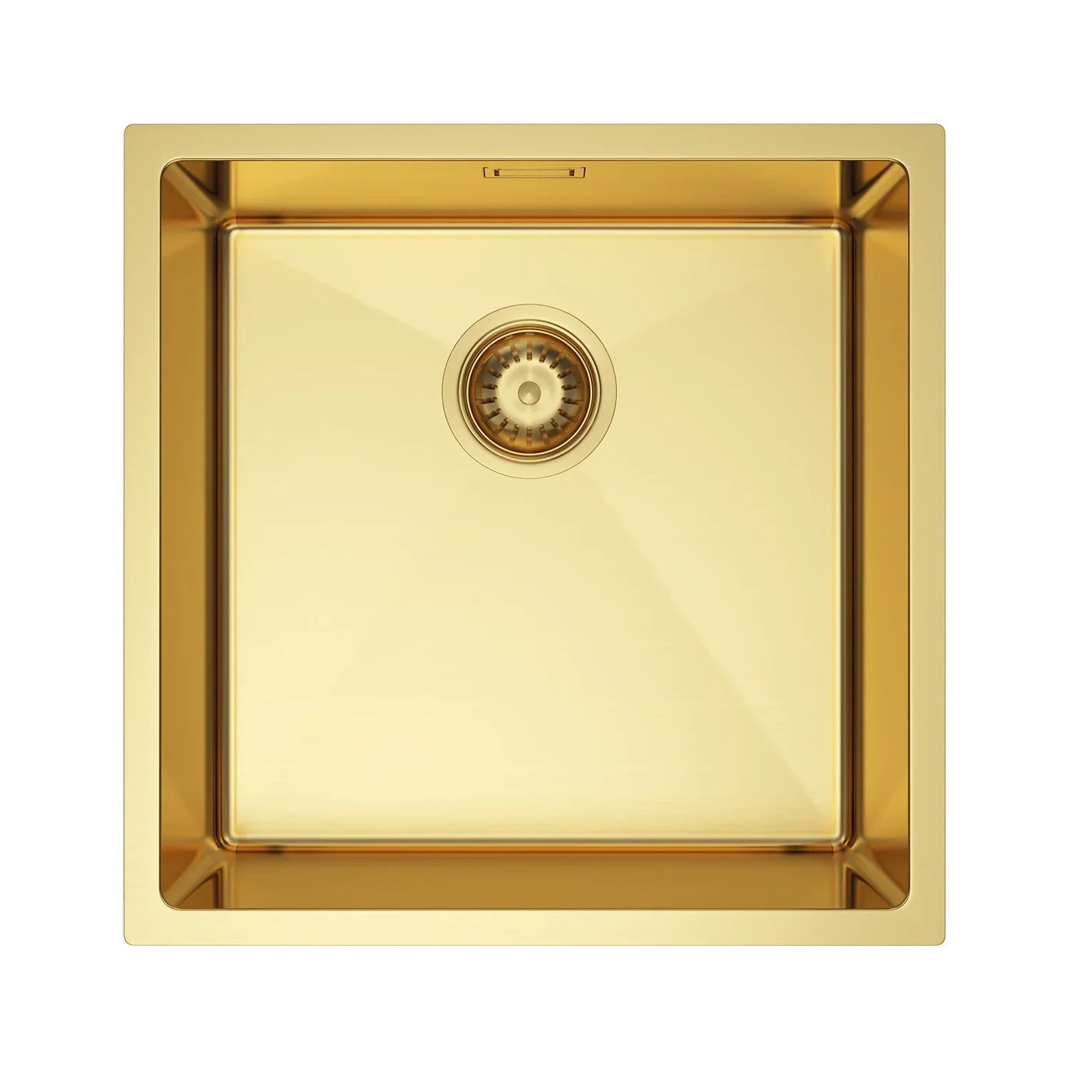Flovia Gold PVD-Edelstahlspüle 44 x 44 cm – Einzelschüssel oben/Untermontage – mit Abflusssatz und Zubehör