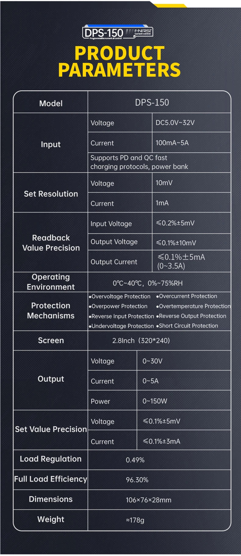 Model: DPS-150 mini DC power supply