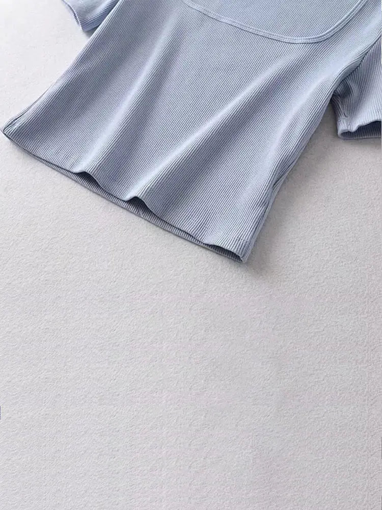 Frauen quadratischen Hals Rippe Ernte T-Shirt Kurzarm Crop Top
