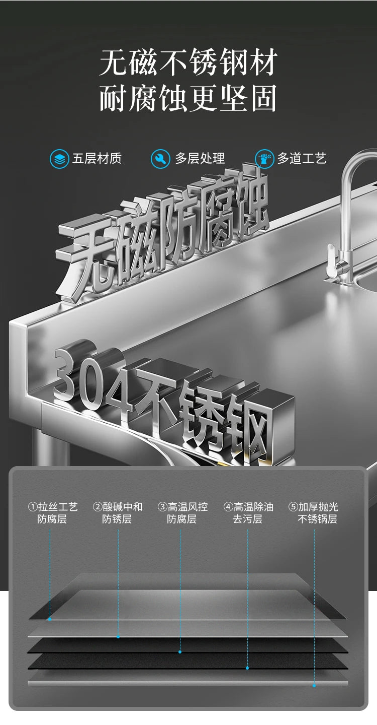 Free Standing Whole Body 100% Stainless Steel 304 Vegetables Wash Basin Kitchen Sink Pool with Bracket and Board