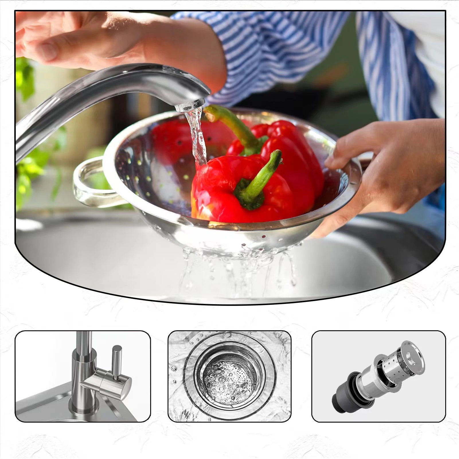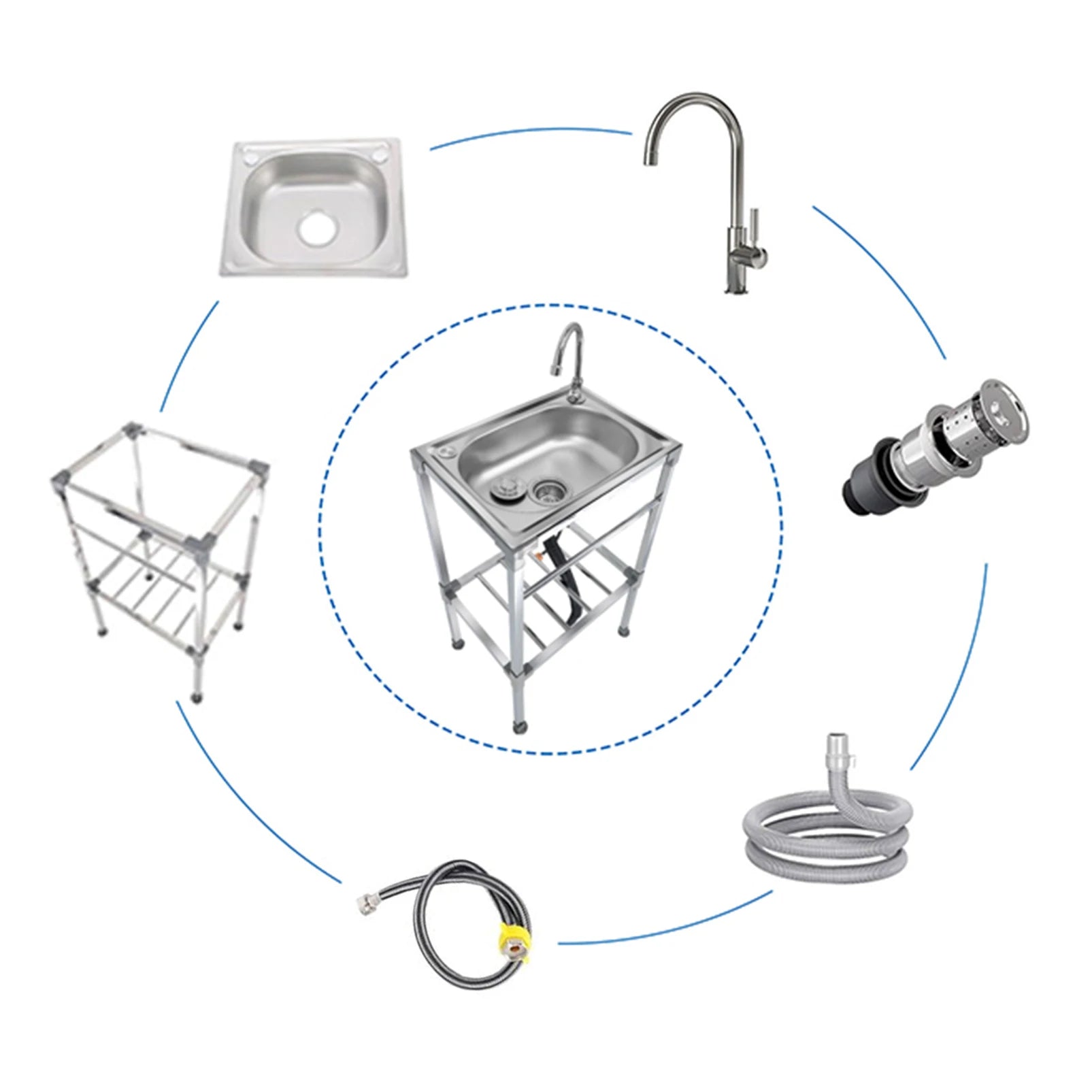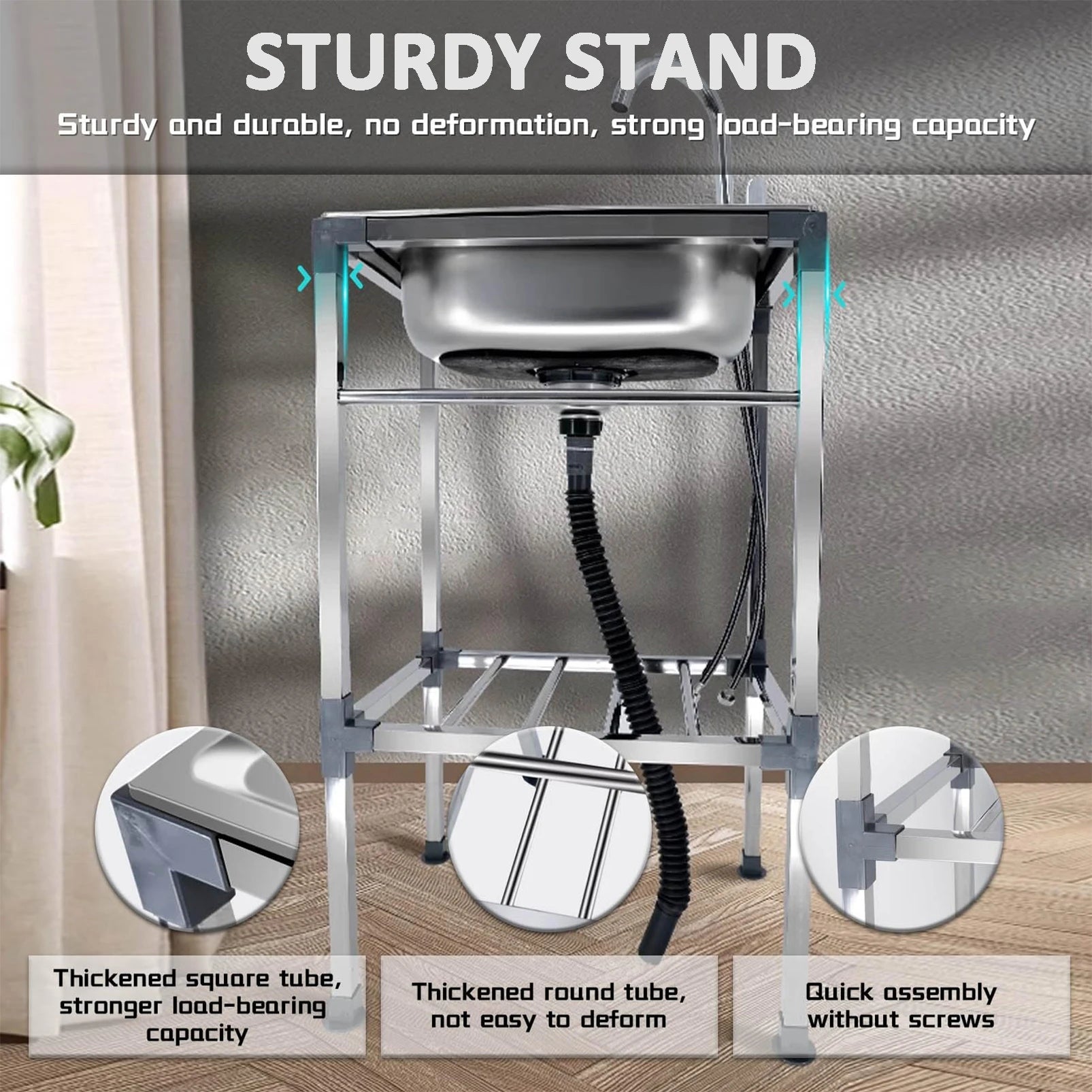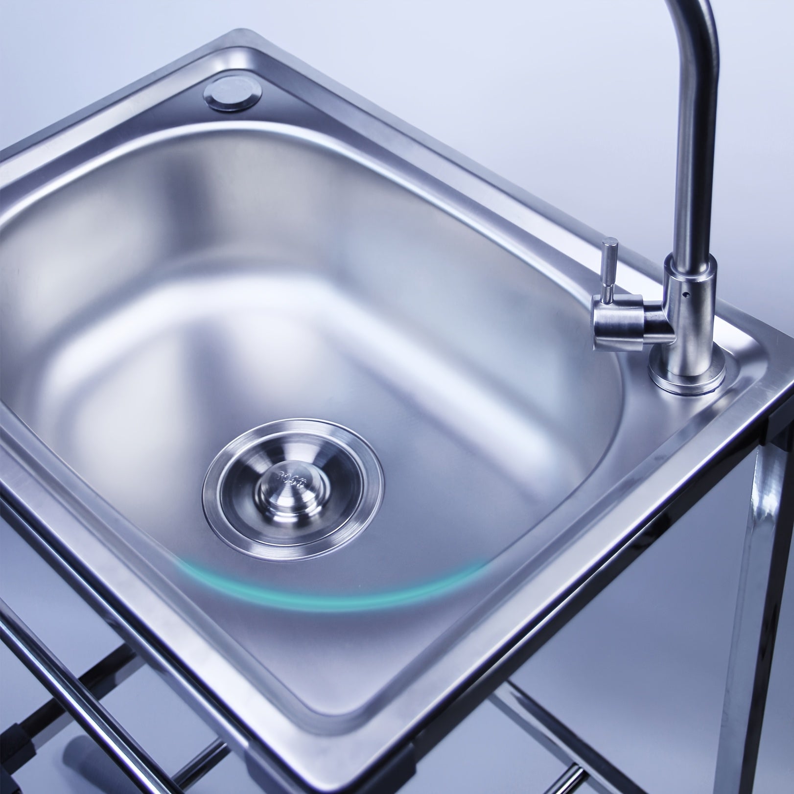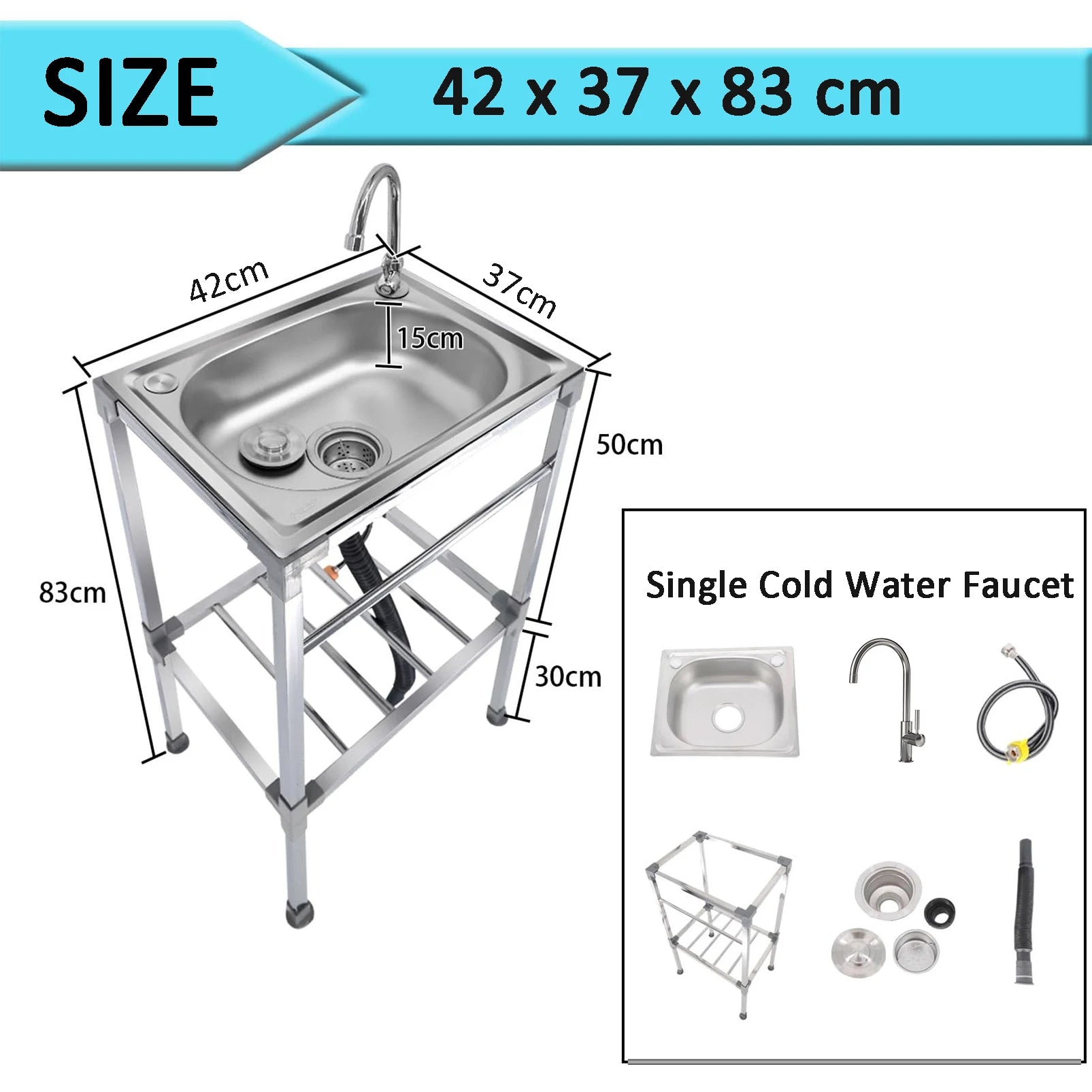 Freistehendes Küchenspülbecken aus Edelstahl mit Kaltwasserhahn – Einzelschüssel-Design, geeignet für Camping, Gärten, Wäsche.