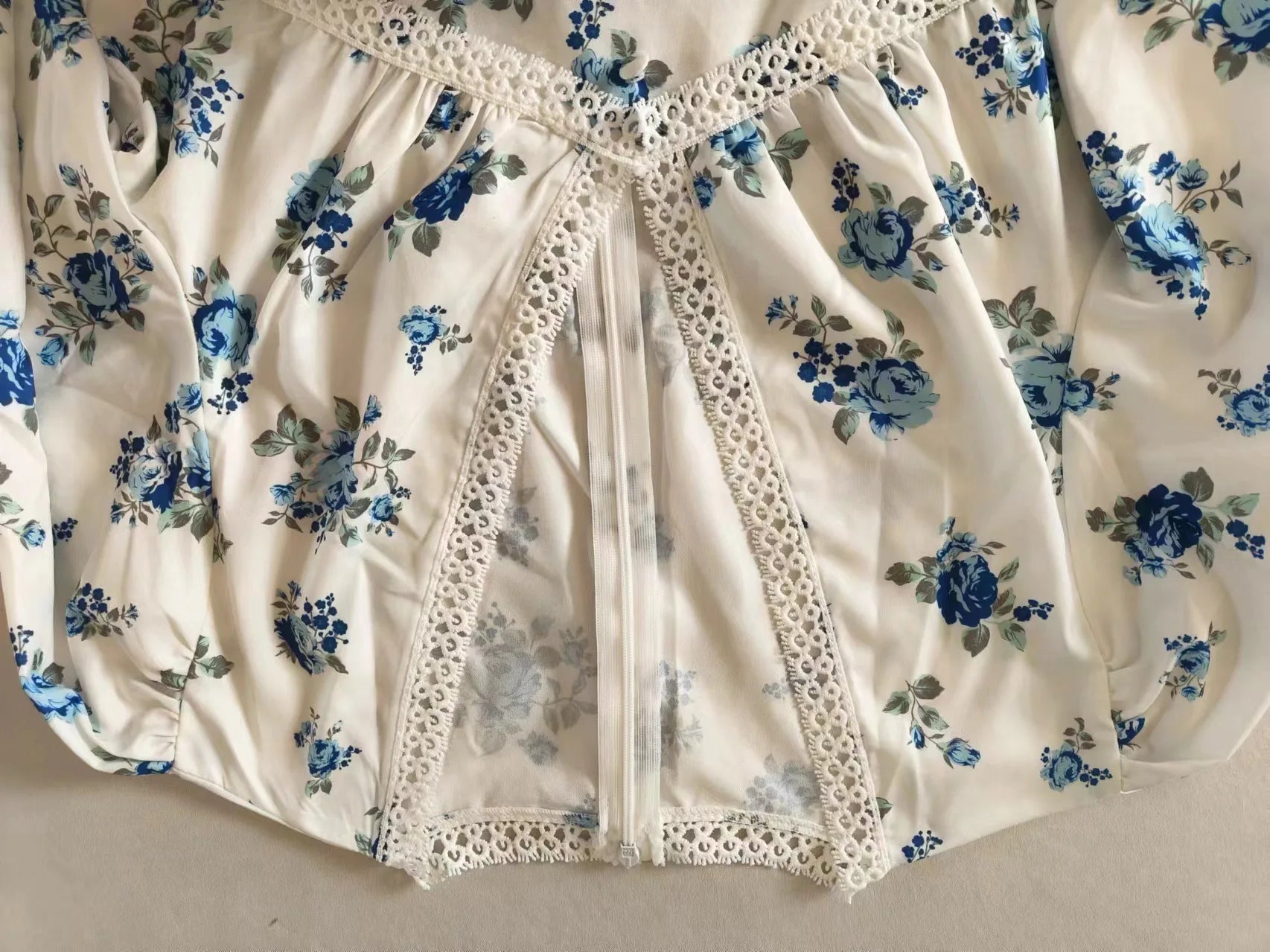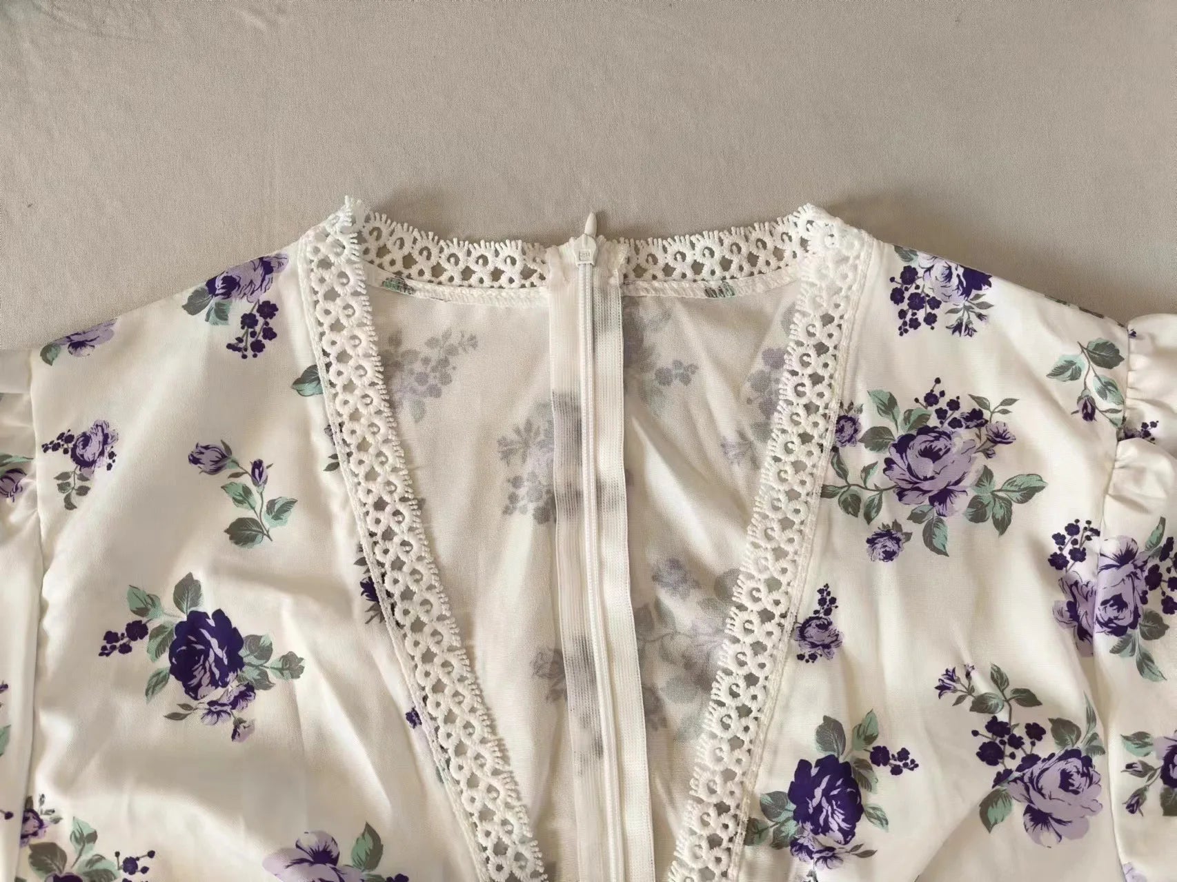 Frühling Herbst frauen Neue Kleid Temperament Süße Druck V-ausschnitt Laterne Hülse Spitze Hohe Taille Kurzes Kleid