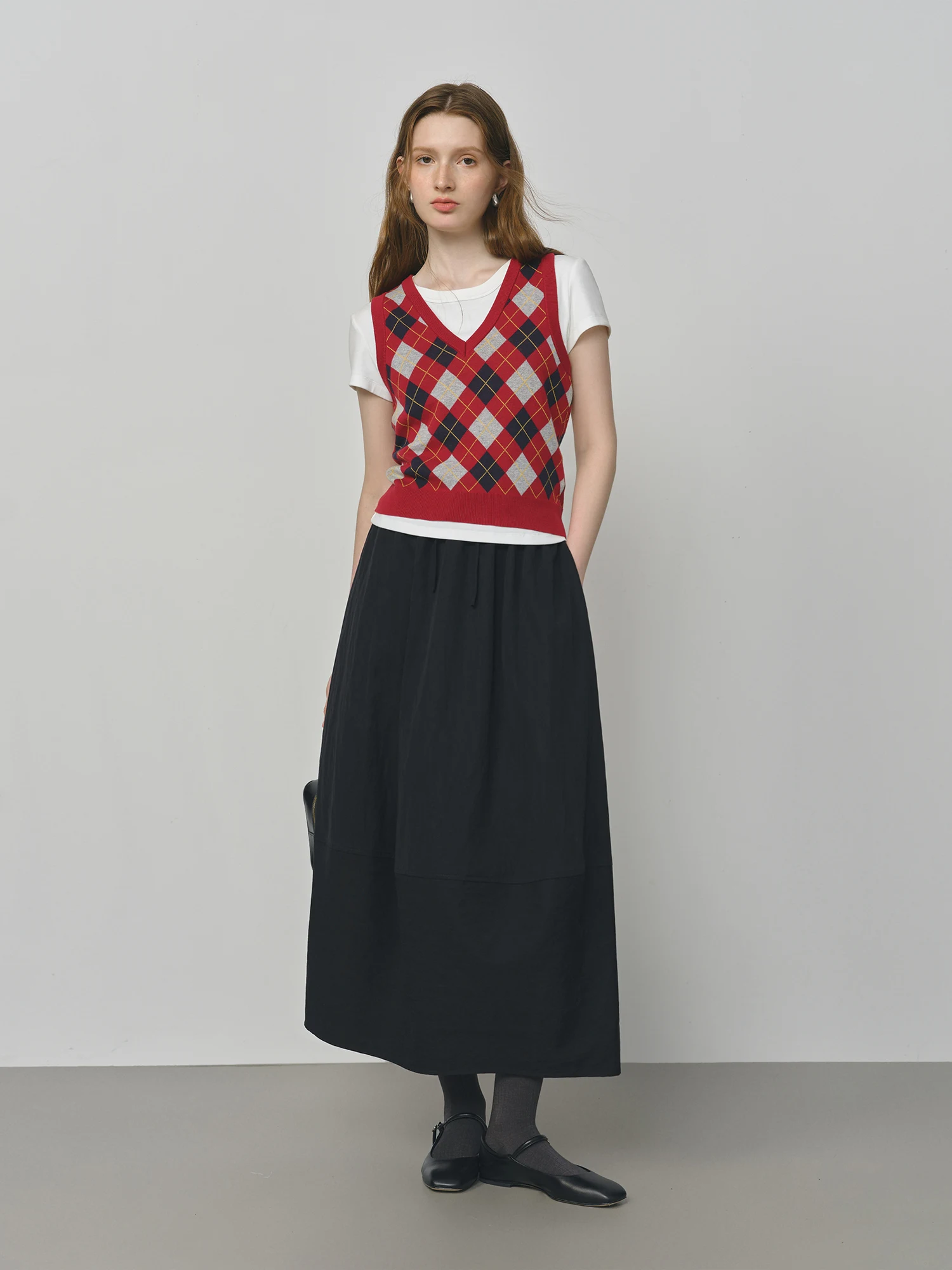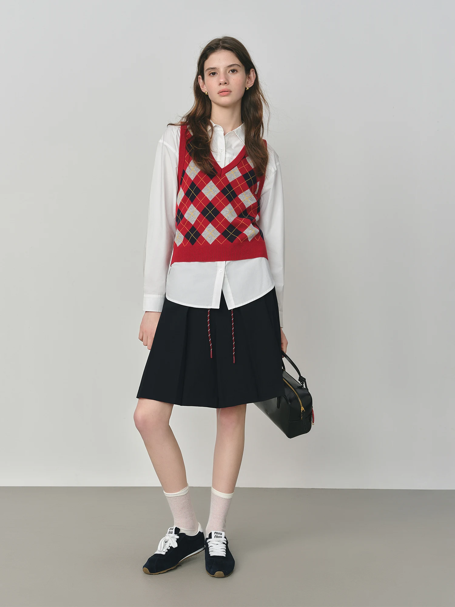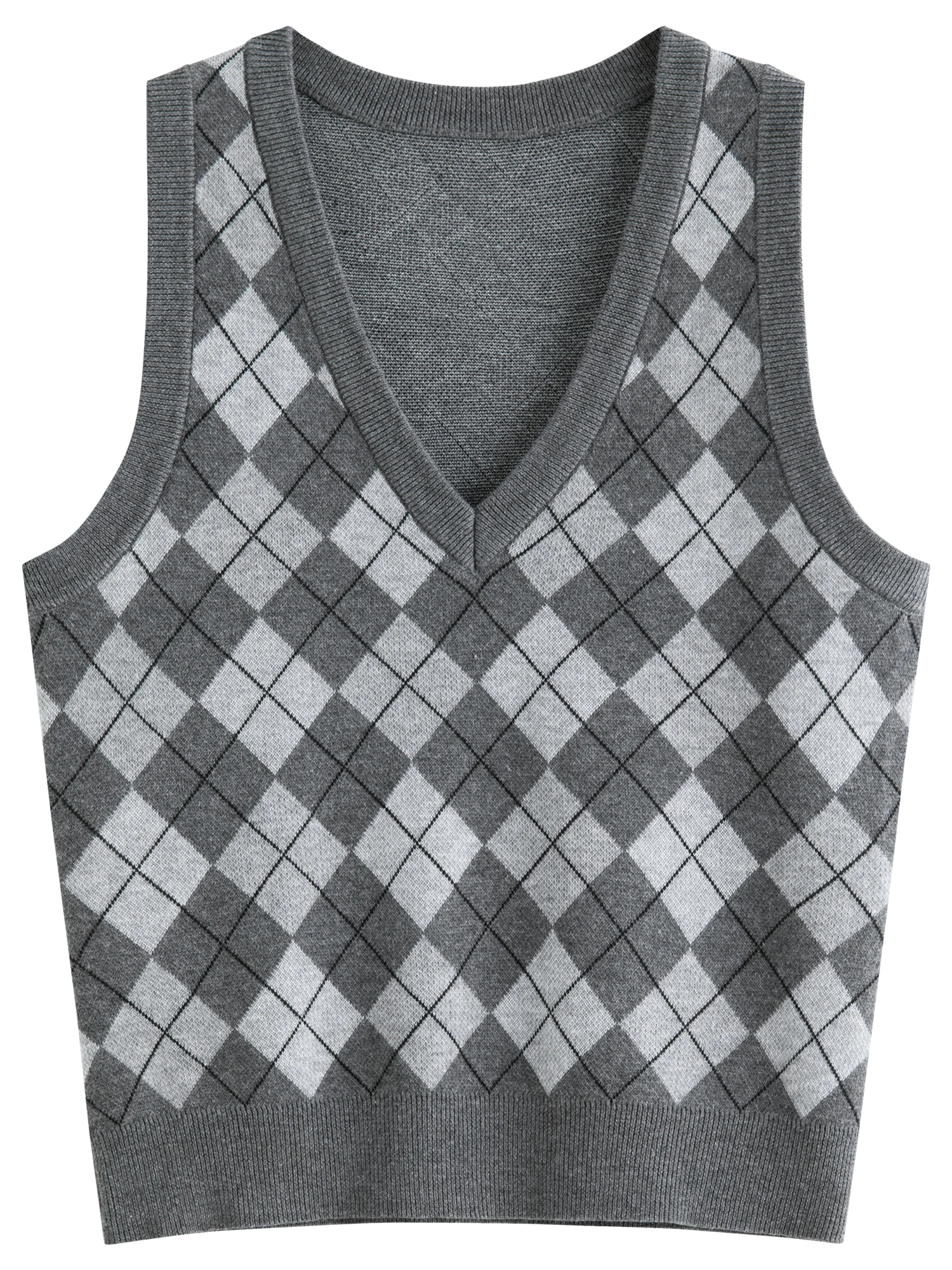 FSLE Plaid Rot Grau V-ausschnitt Gestrickte Weste Top für Frauen 2025, Herbst Neue Ankunft Retro College Stil Oberbekleidung Weste 25FS13248