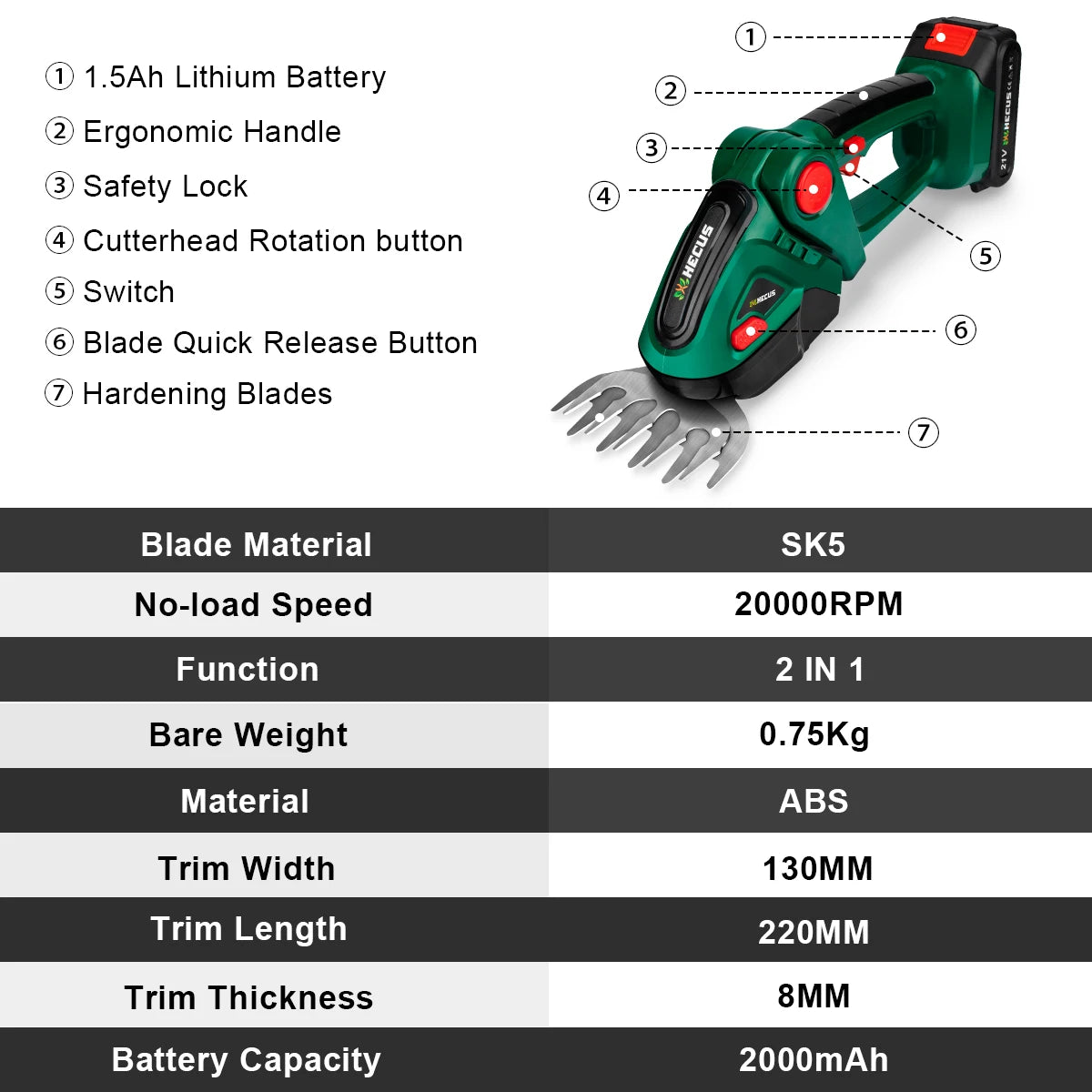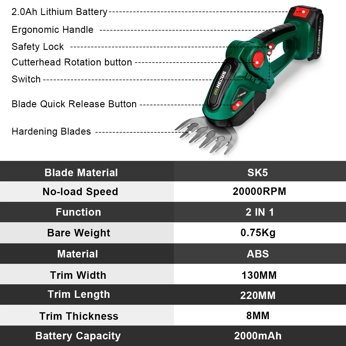 G Nadal 2 in 1 elektrischer Heckenschere 20000 U/min Handhaushalt Rasenmäher Gartenschere Elektrowerkzeug für Makita 18 V Akku Pin