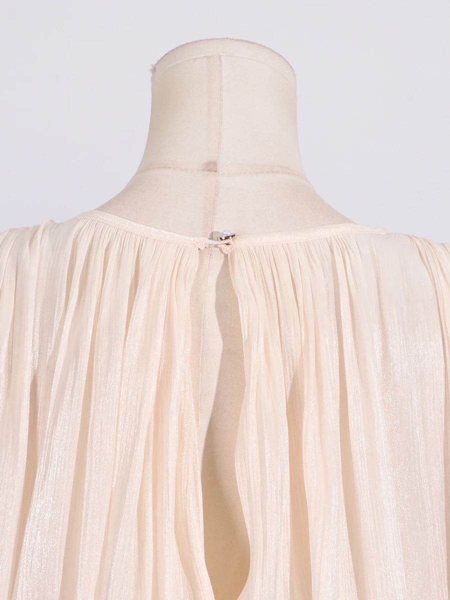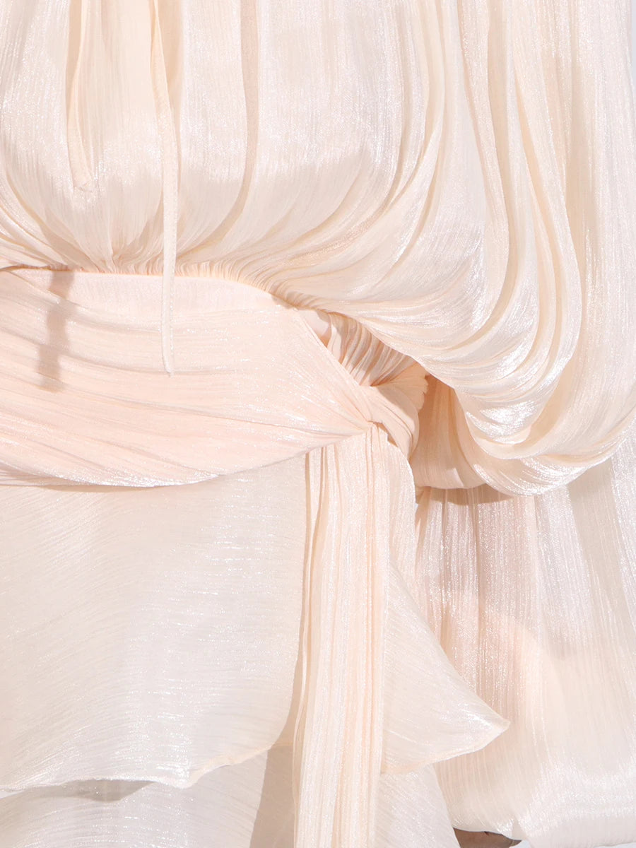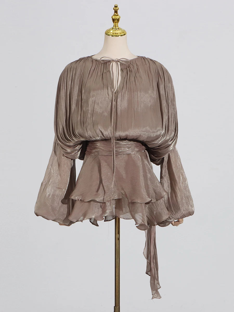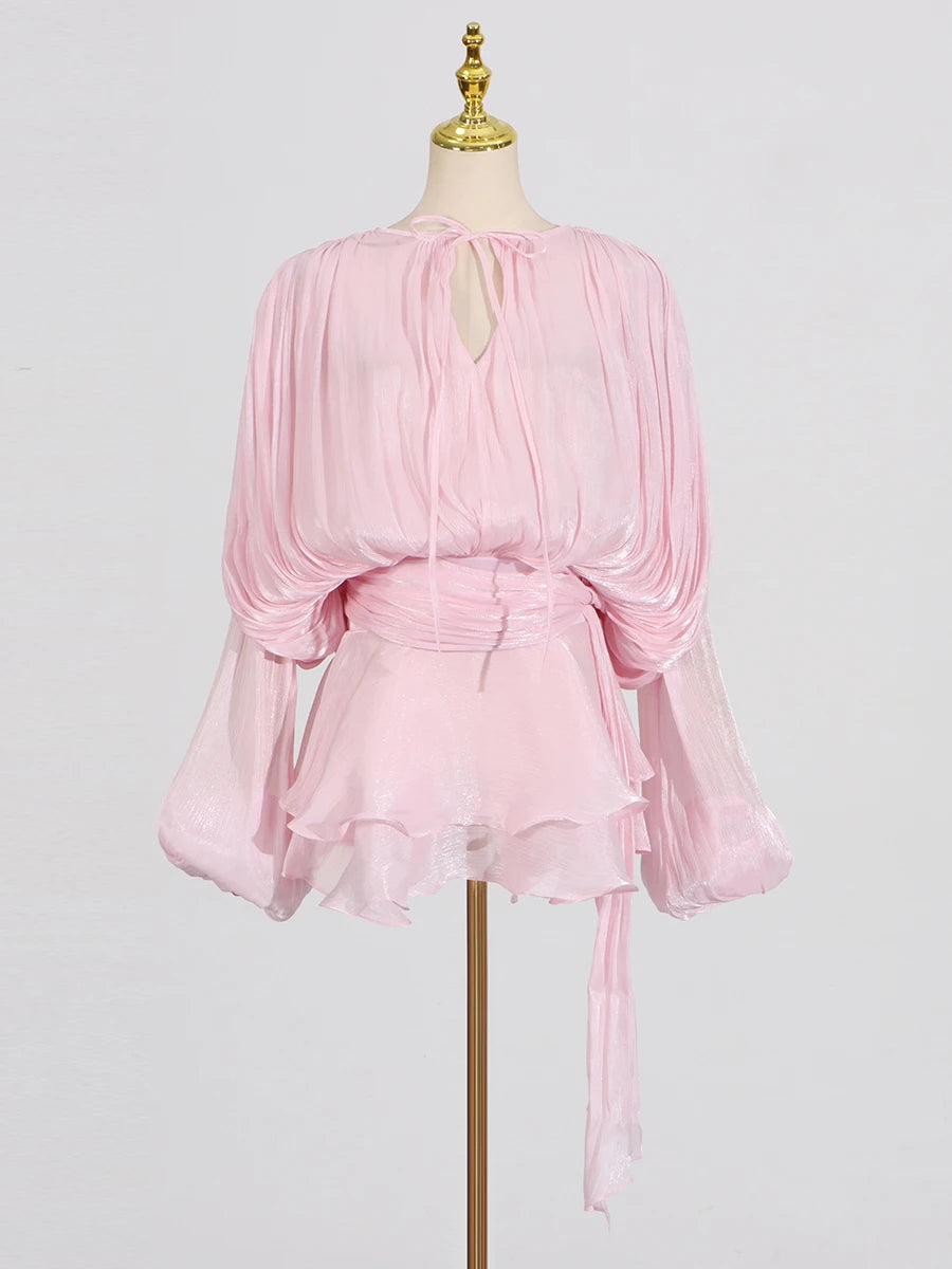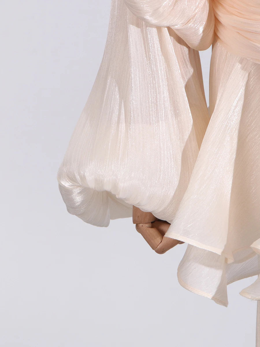 GALCAUR Solide Lose Splicd Lace Up Kleider Für Frauen V-ausschnitt Mit Langen Ärmeln Patchwork Rüschen Tunika Kleider Weibliche Mode Neue