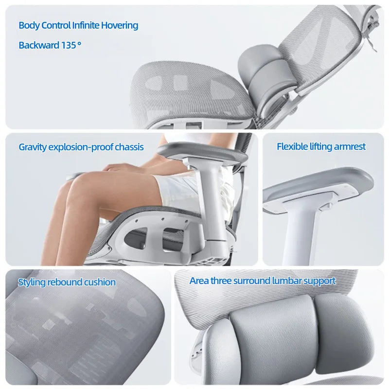 Gaming-Computerstuhl, ergonomischer Heimbürositz, 135-Grad-Backung mit Fußstütze, Lordosenstütze, höhenverstellbarer Sessel