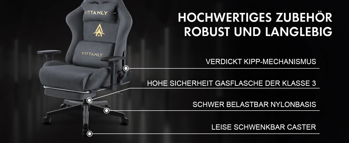 Gaming-Stuhl, Bürostuhl, atmungsaktiver Wildlederstoff, Spielstuhl mit Fußstütze, Fußstütze, Stuhl, Kopfstütze, groß, hoch, ergonomischer Spielstuhl