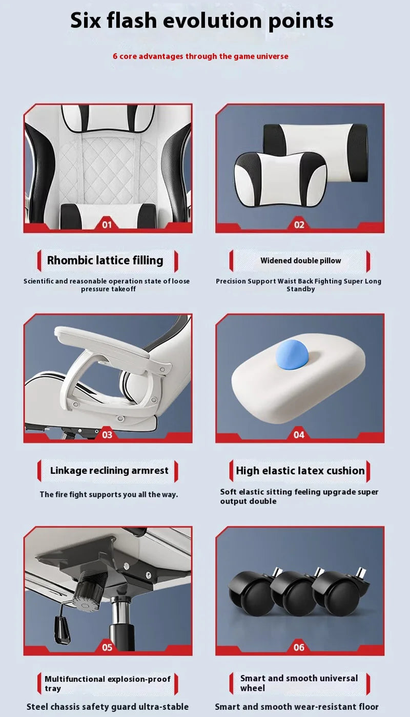 Gaming-Stuhl im Racing-Stil, drehbarer Bürostuhl, 8 cm dickes Latexkissen, verstellbarer Computersitz aus 135 Grad PU-Leder