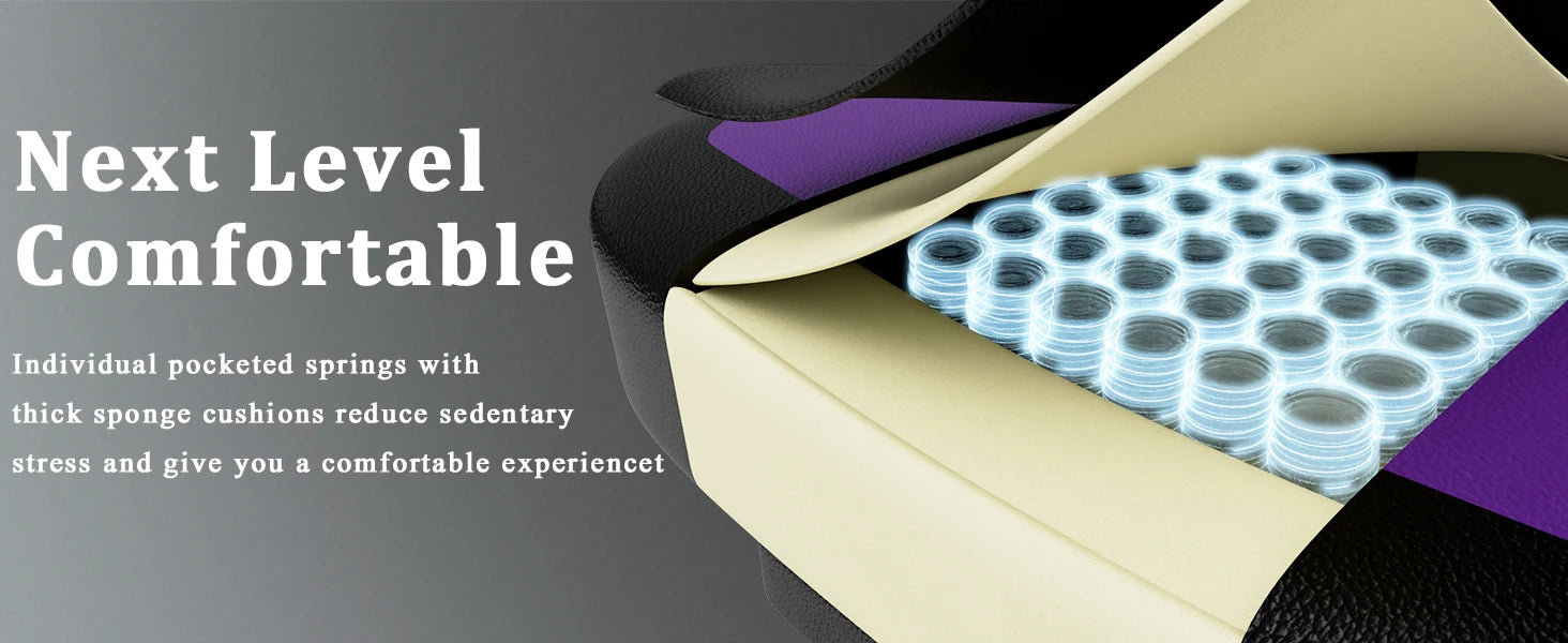 Gaming-Stuhl mit Taschenfederkissen und Fußstütze, ergonomischer Computerstuhl für Erwachsene, atmungsaktiver Spielstuhl aus PU-Leder, Adj