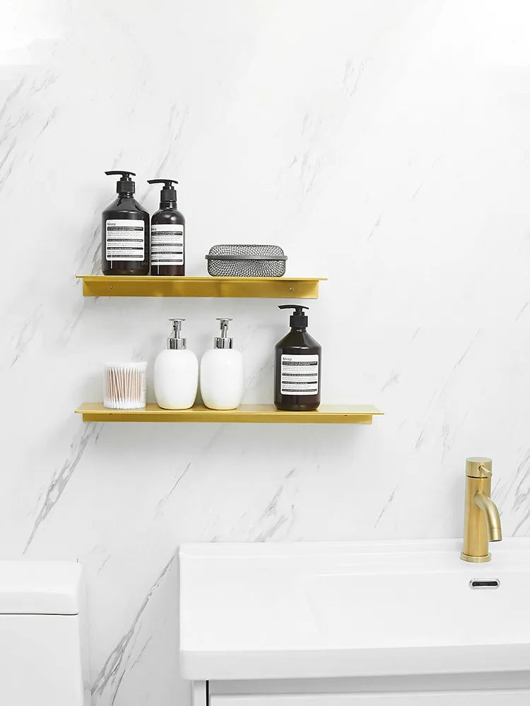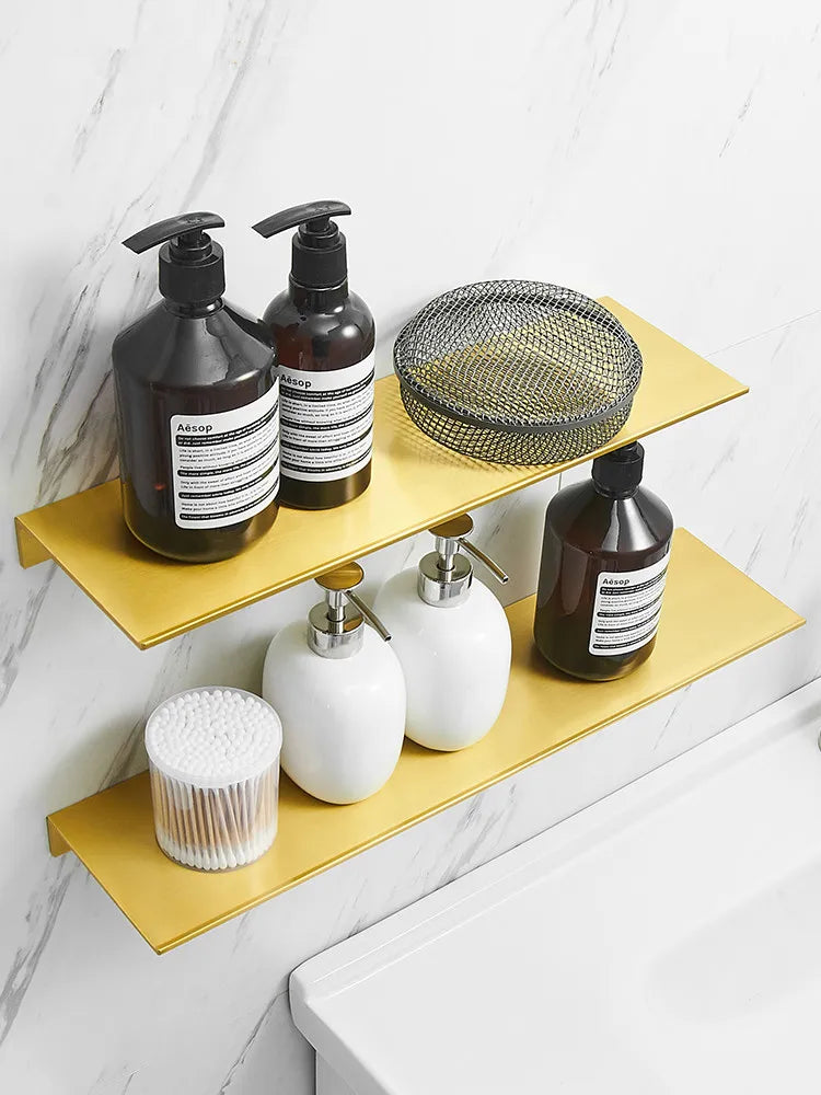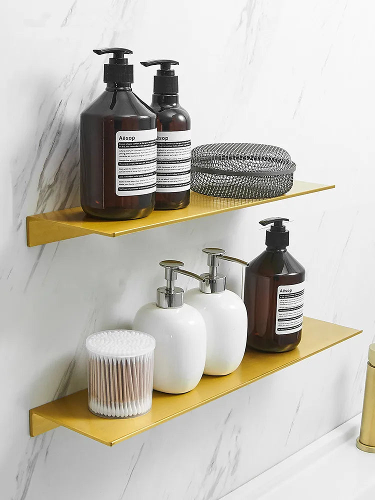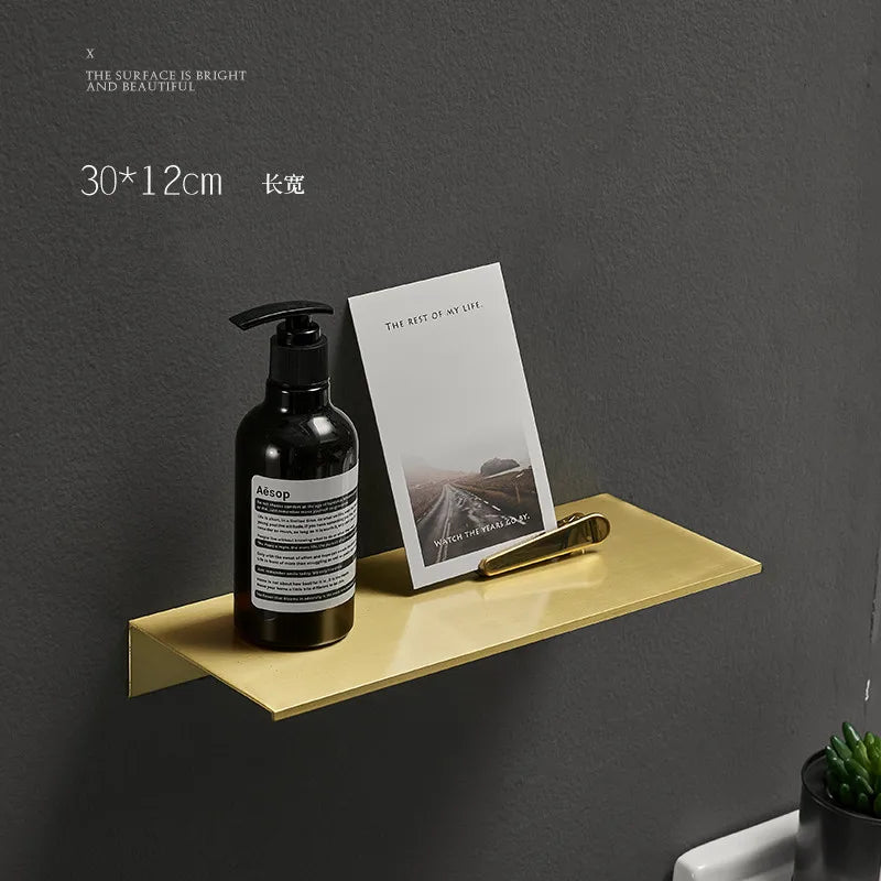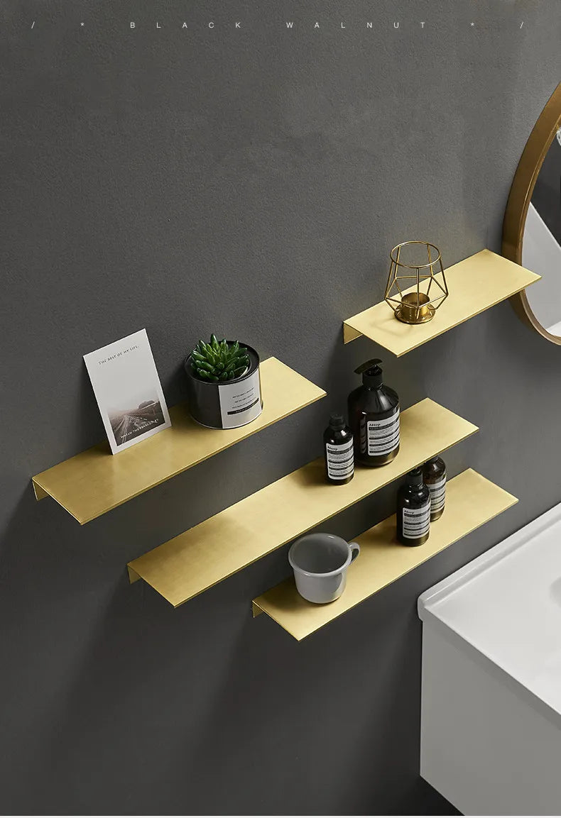 Gebürstet Gold Metall Bad Regal Wand Lagerung Rack Waschtisch Bohren Große Wand Regal für Lagerung 30/40/50/60cm Länge Halter