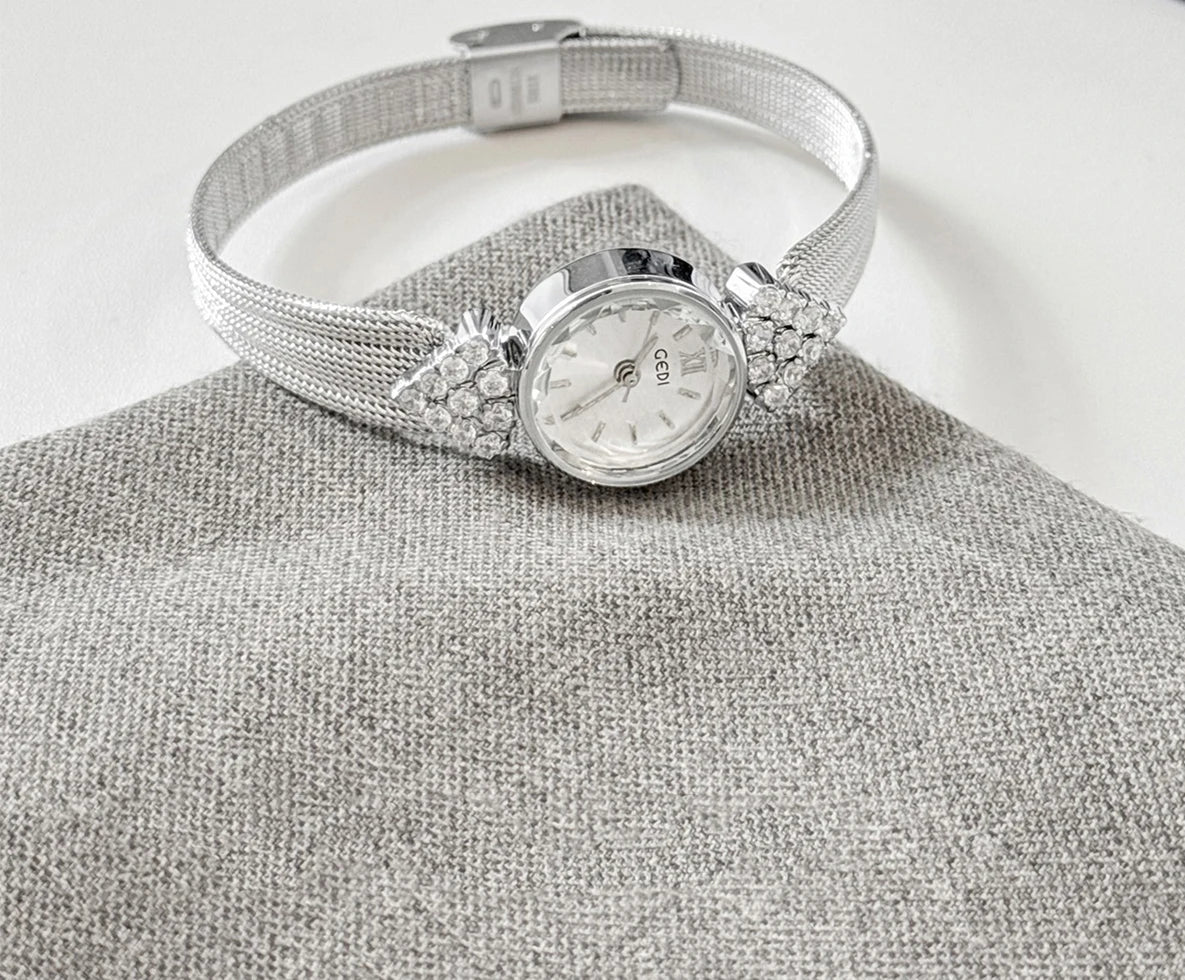 GEDI Watch Gold Silver Diamond Inlaid Steel Strip Women's Wristwatch Vintage Niche Light Luxury Temperament Quartz Watch Woman
