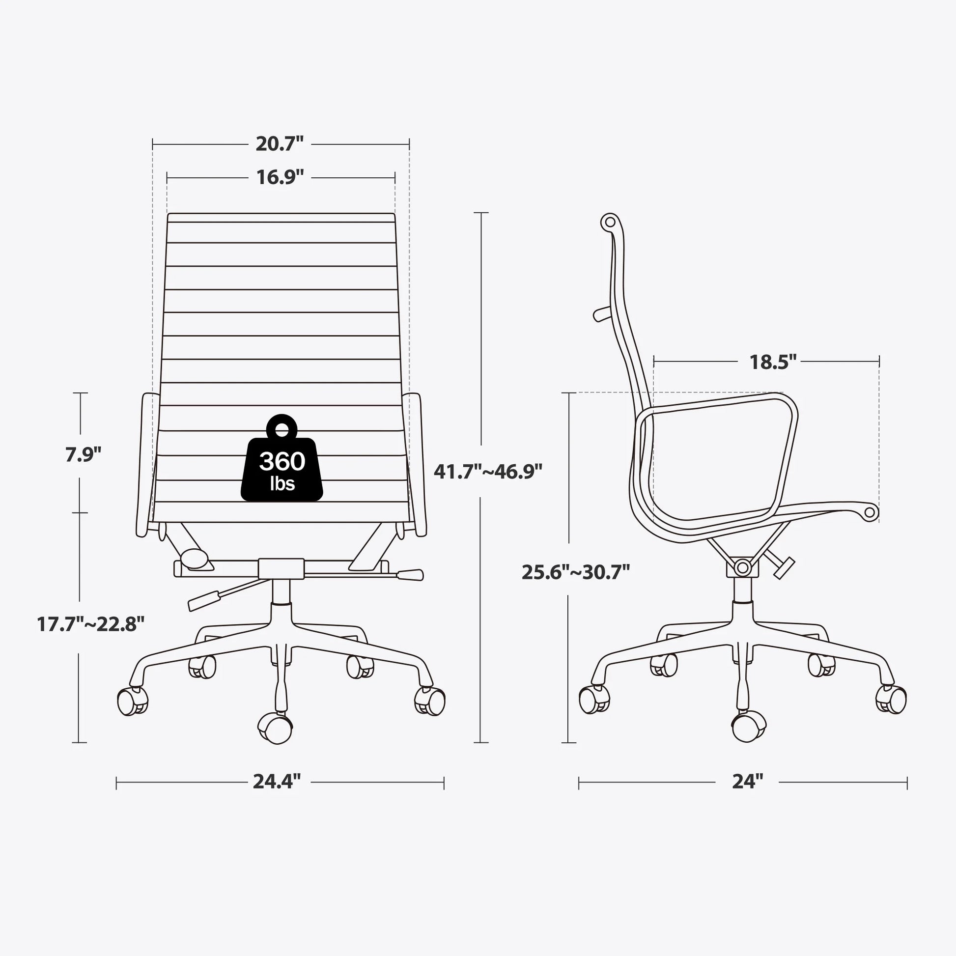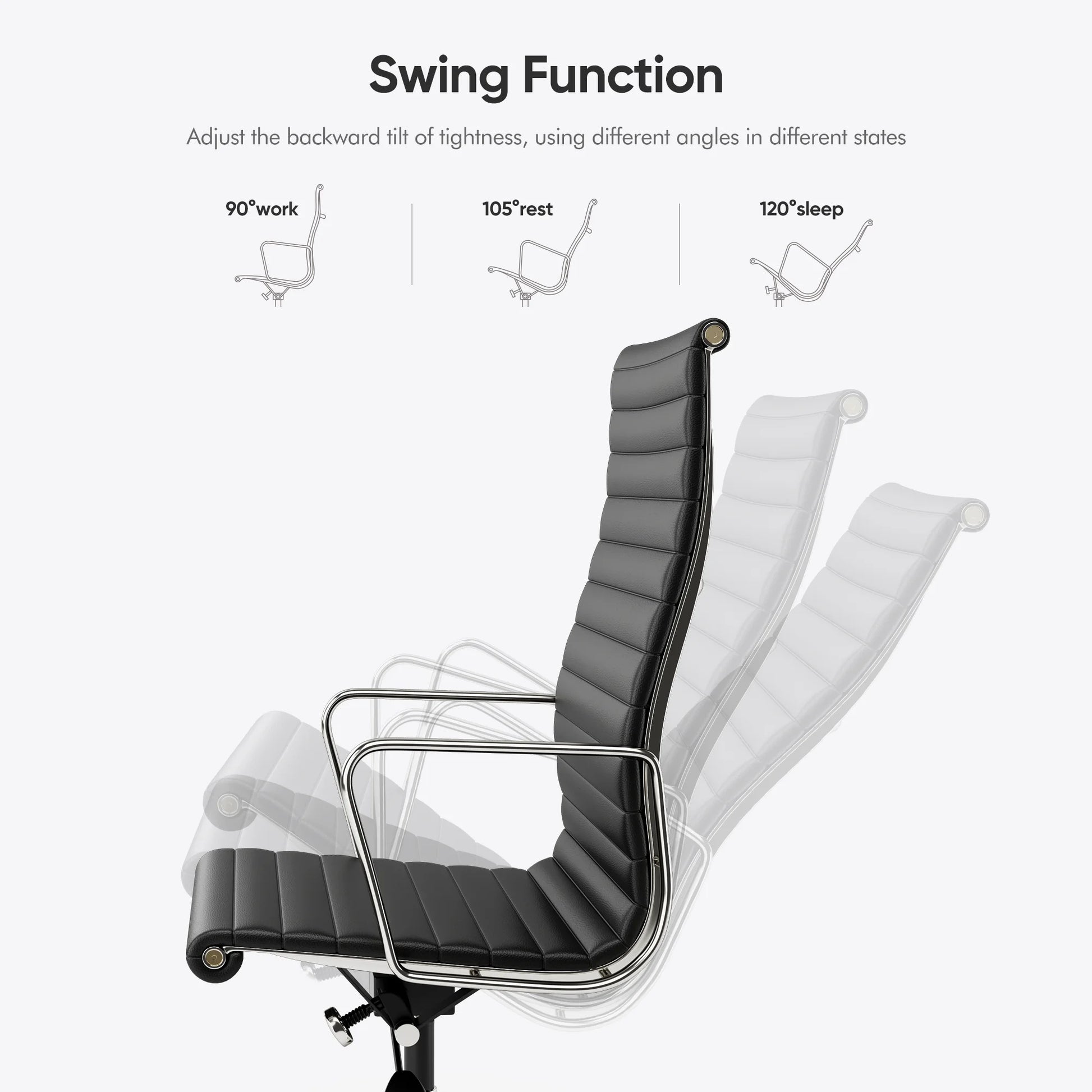 Gerippter Bürostuhl mit hoher mittlerer Rückenlehne, Drehstuhl aus echtem Leder mit Rahmen aus Aluminiumlegierung, verstellbarer ergonomischer Computerstuhl