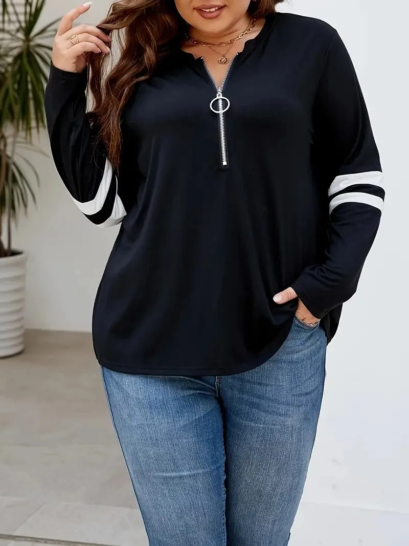 Gibsie Plus Size schwarz O-Ring Reiß verschluss vorne Sweatshirts Frauen Frühling Herbst Streifen Langarm weibliche lässige Pullover Tops