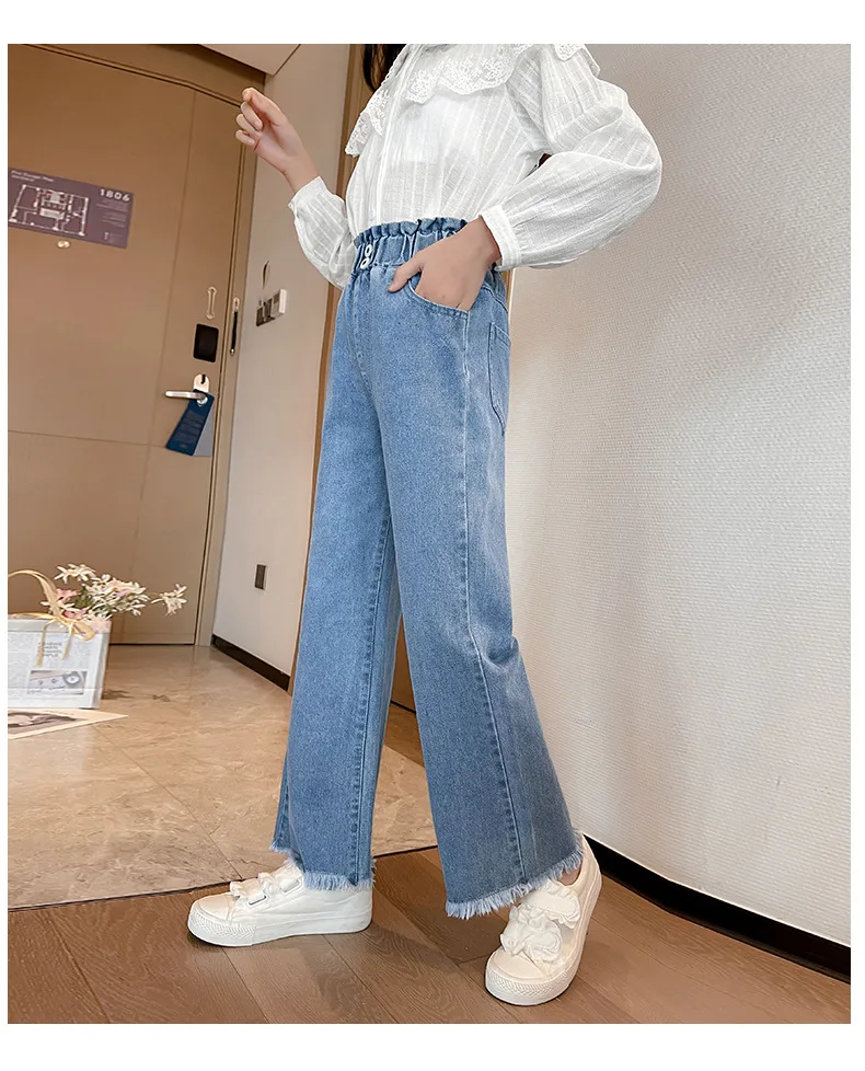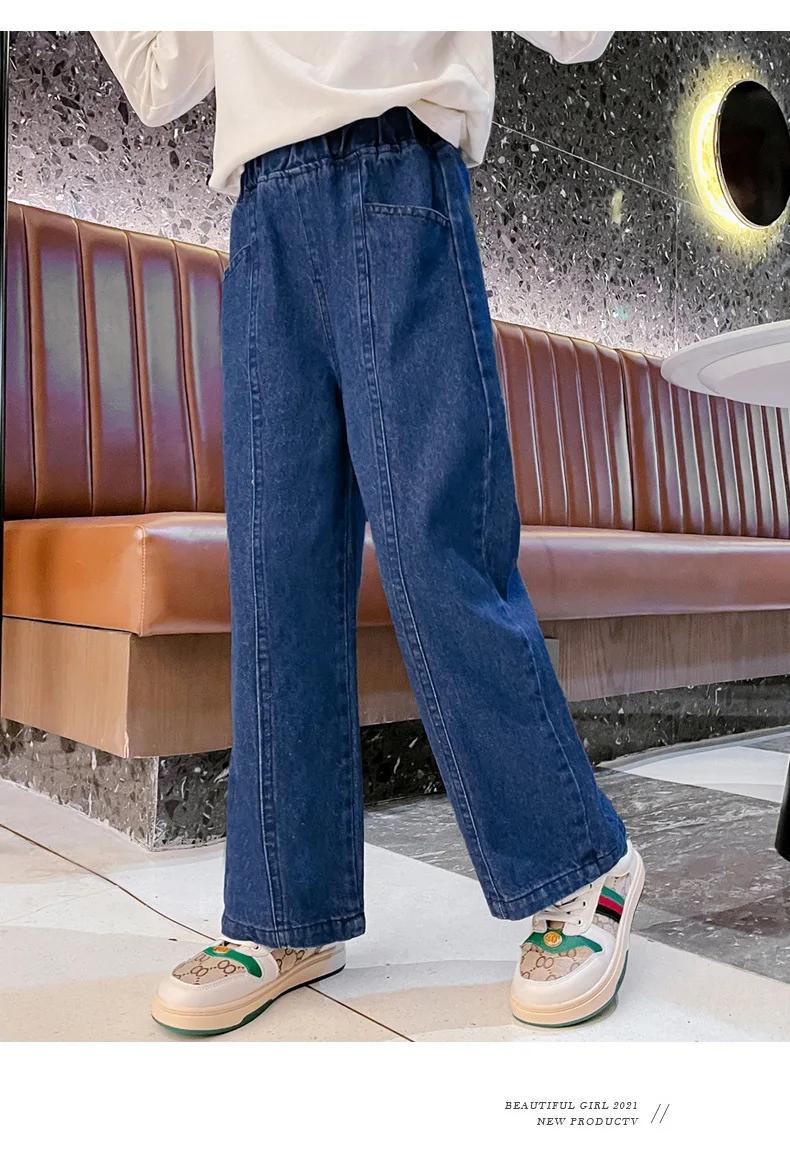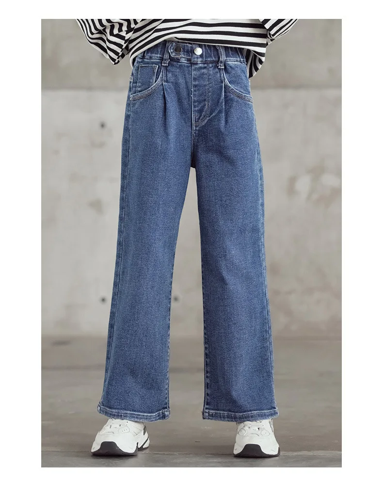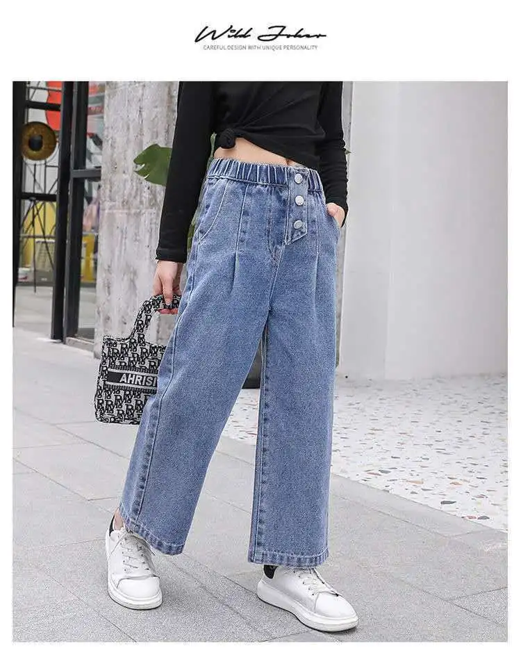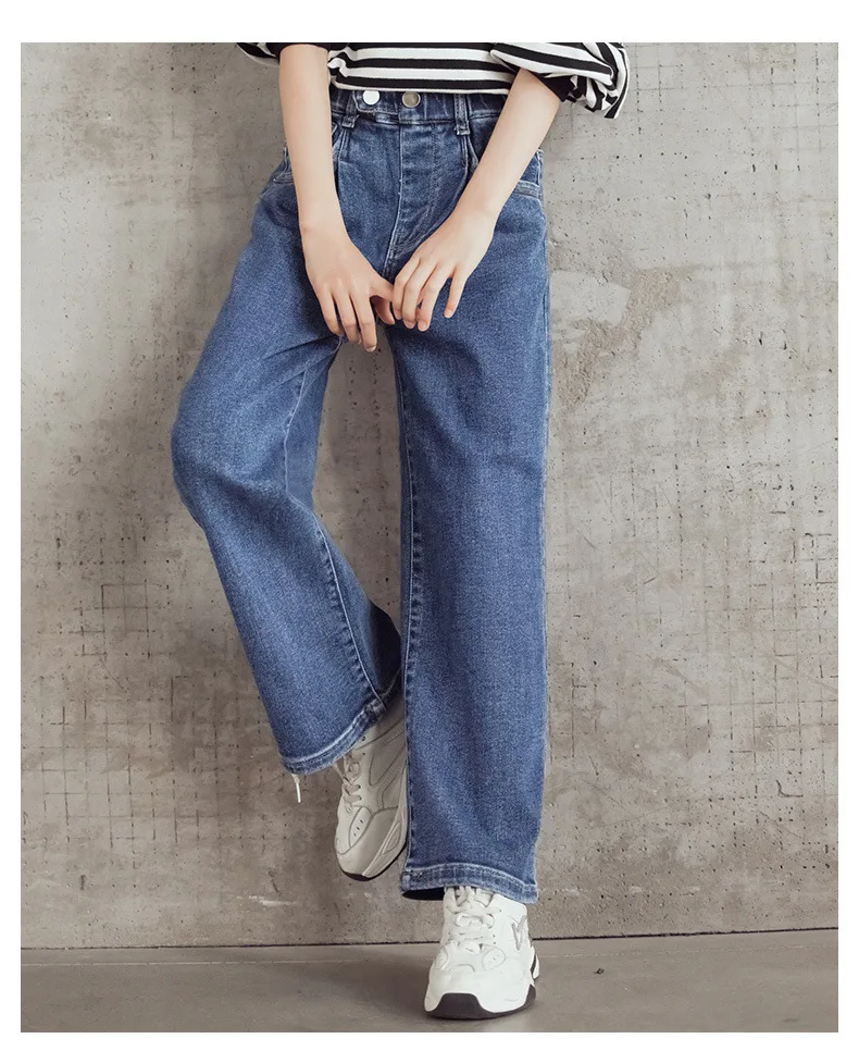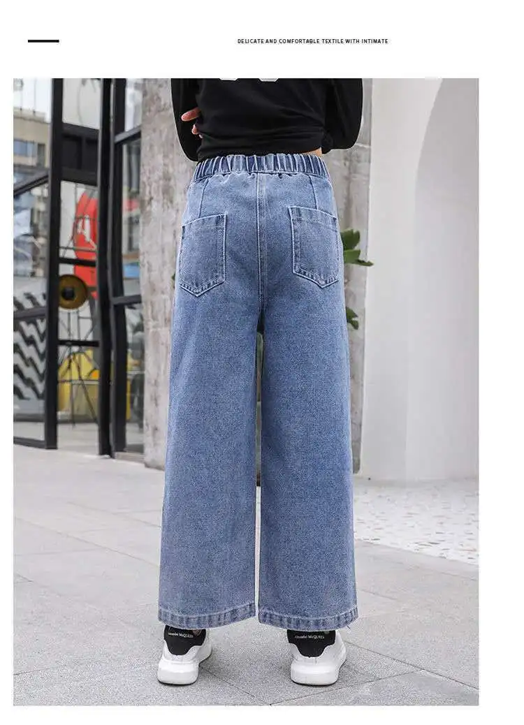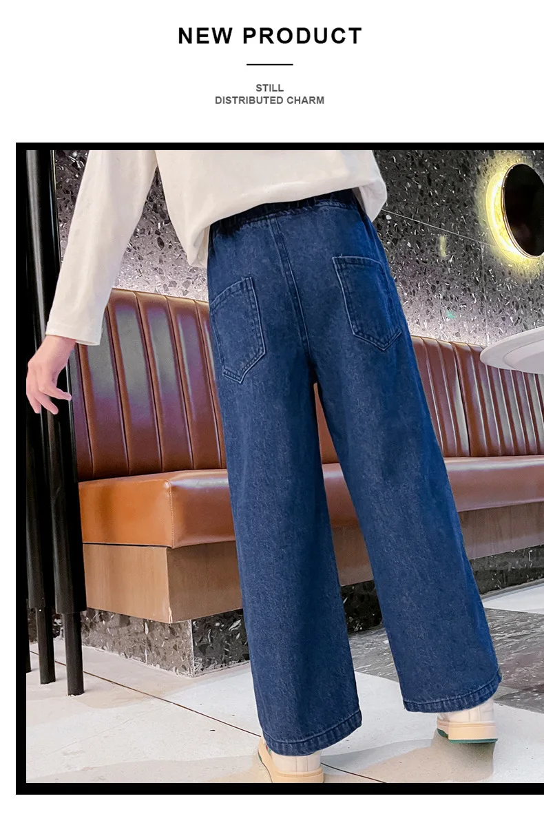 Girls Jeans 2024 Autumn Loose Straight Wide-Leg Pants Kids Trousers Jeans for Children 10 12 13 14 Years Blue High Waist Pants