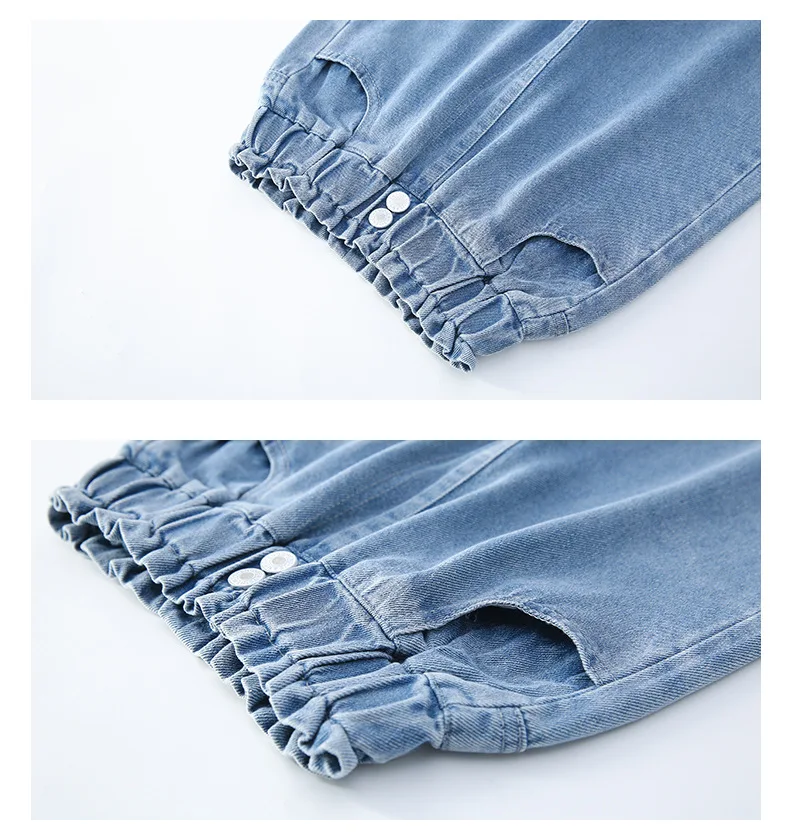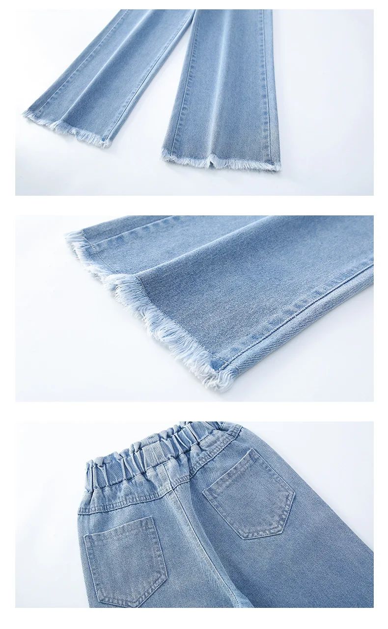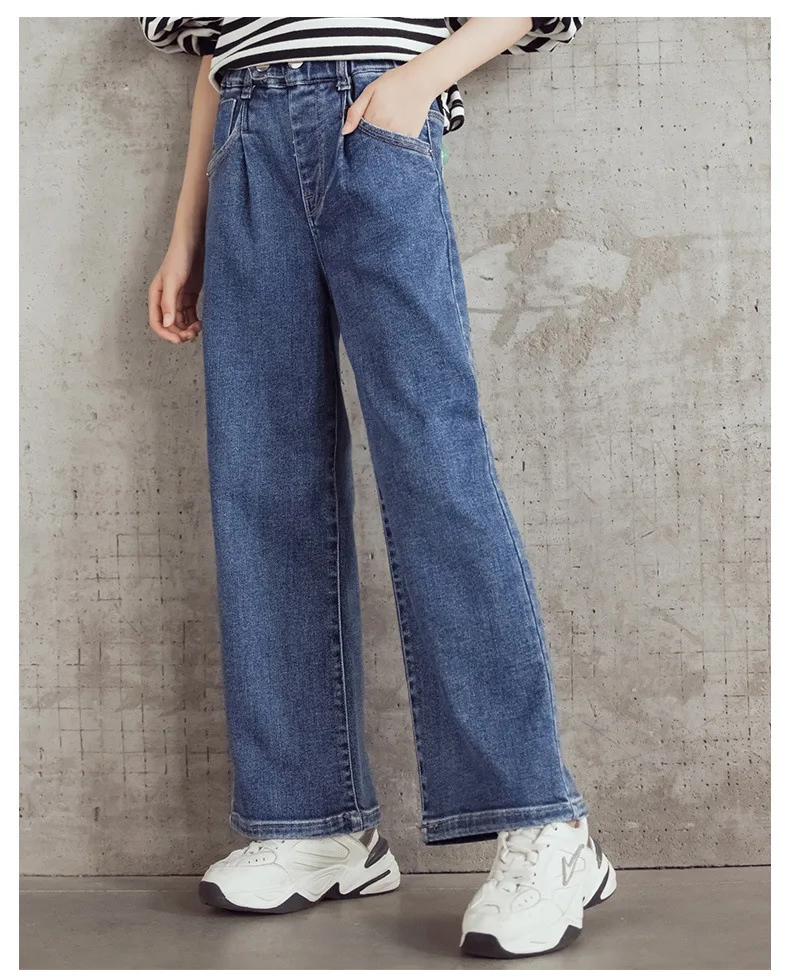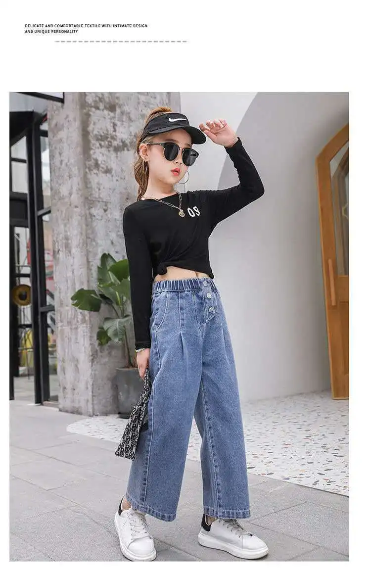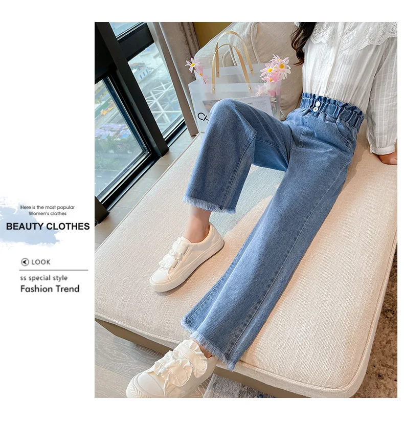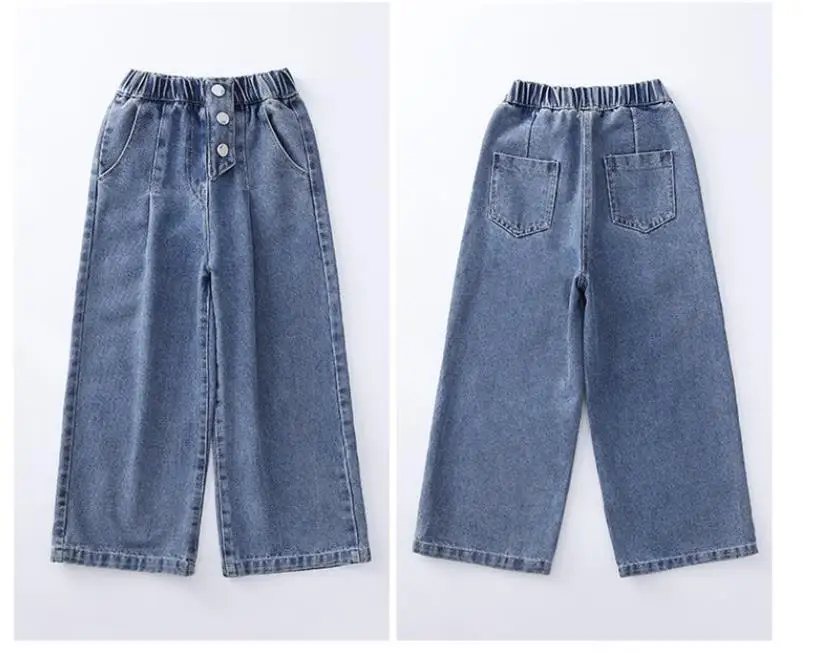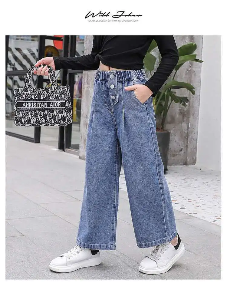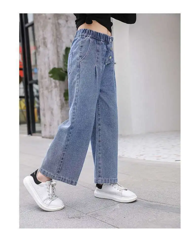 Girls Jeans 2024 Autumn Loose Straight Wide-Leg Pants Kids Trousers Jeans for Children 10 12 13 14 Years Blue High Waist Pants