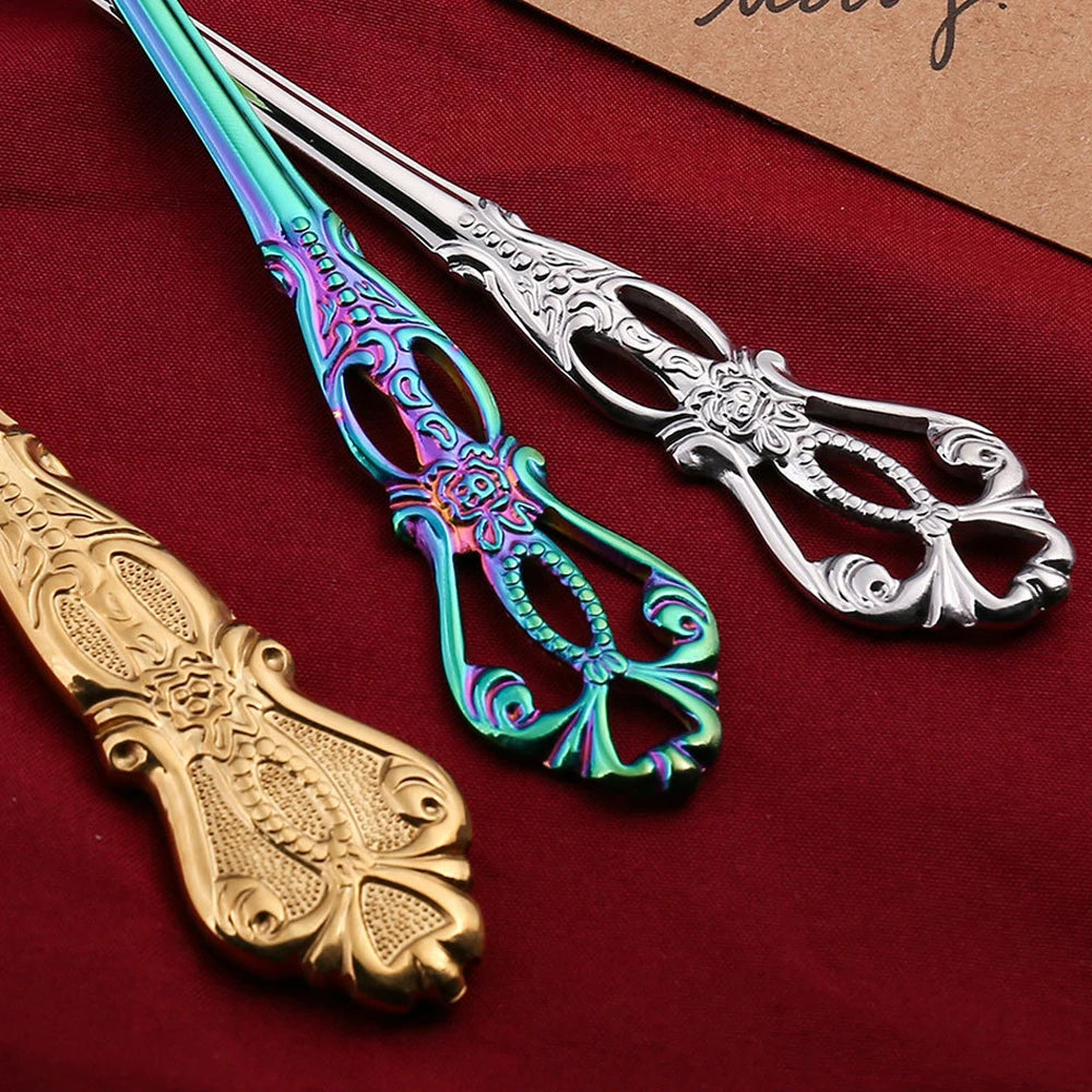 Golden Stainless Steel Cutlery Set Royal European Spoon Fork Complete Tableware Retro Design Dishwasher Safe Elegant Flatware