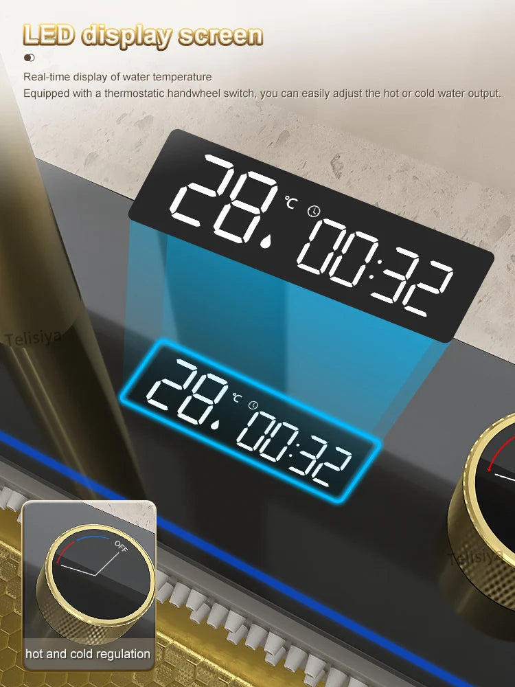 Goldenes Wasserfall-Küchenspüle, Edelstahlspüle, geprägte Digitalanzeige, Einzelschlitz-Waschbecken für die Wohnung, goldenes Waschbecken