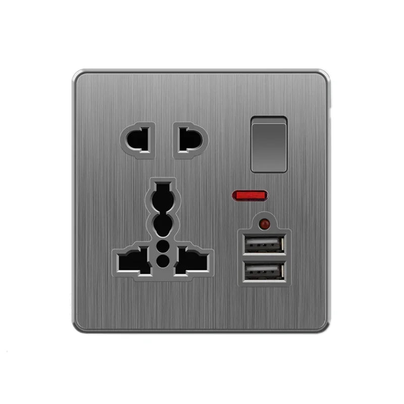 Große Neigungssteckdose im nordischen Stil, grau, 13 A, elektrische Schaltersteckdose nach britischem Standard, universelle Wand-Doppelsteckdose mit USB-Anschluss 2,1 A